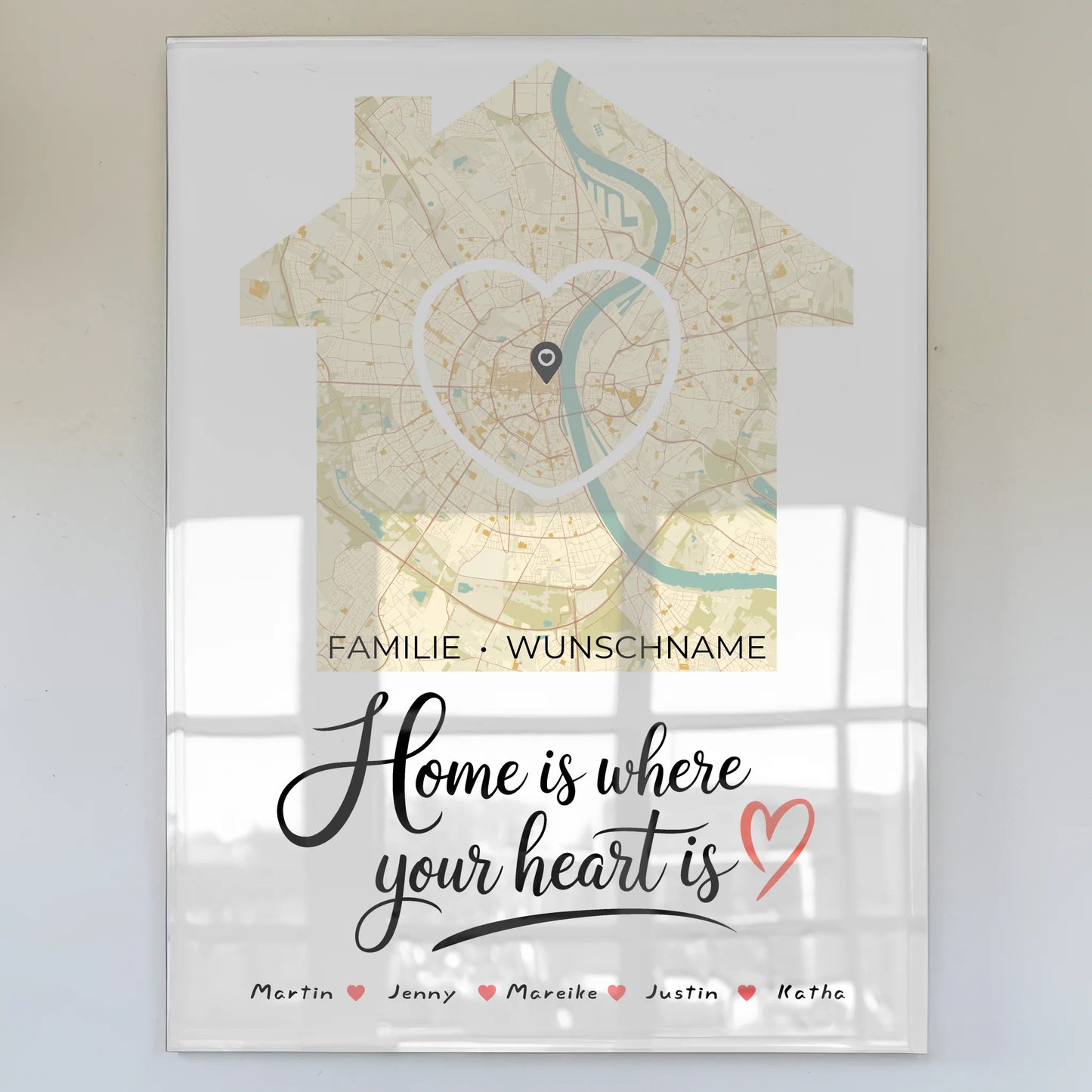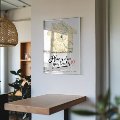 Bestelle jetzt dein personalisiertes Acrylglas Bild Familie Stadtkarte - Where your Heart is und mache dein Zuhause zu einem Ort voller Liebe und Erinnerungen!