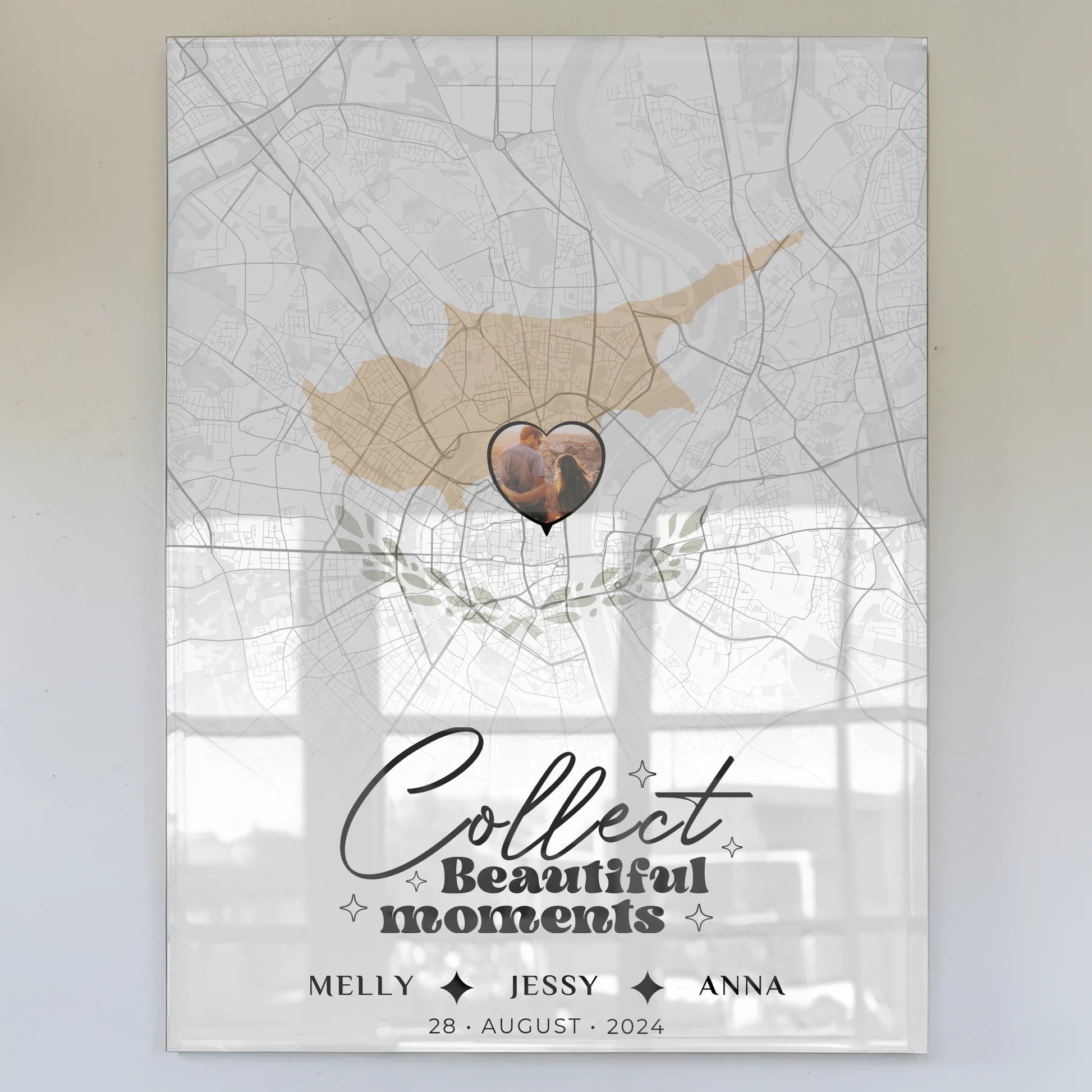 Das Design enthält den inspirierenden Spruch 'Collect Beautyful Moments', der perfekt zu diesem einzigartigen Geschenk passt. Ob zum Geburtstag, zu Weihnachten oder einfach als nette Aufmerksamkeit – dieses personalisierte Acrylglas Bild ist für jeden Anlass geeignet und setzt ein echtes Zeichen der Verbundenheit.
