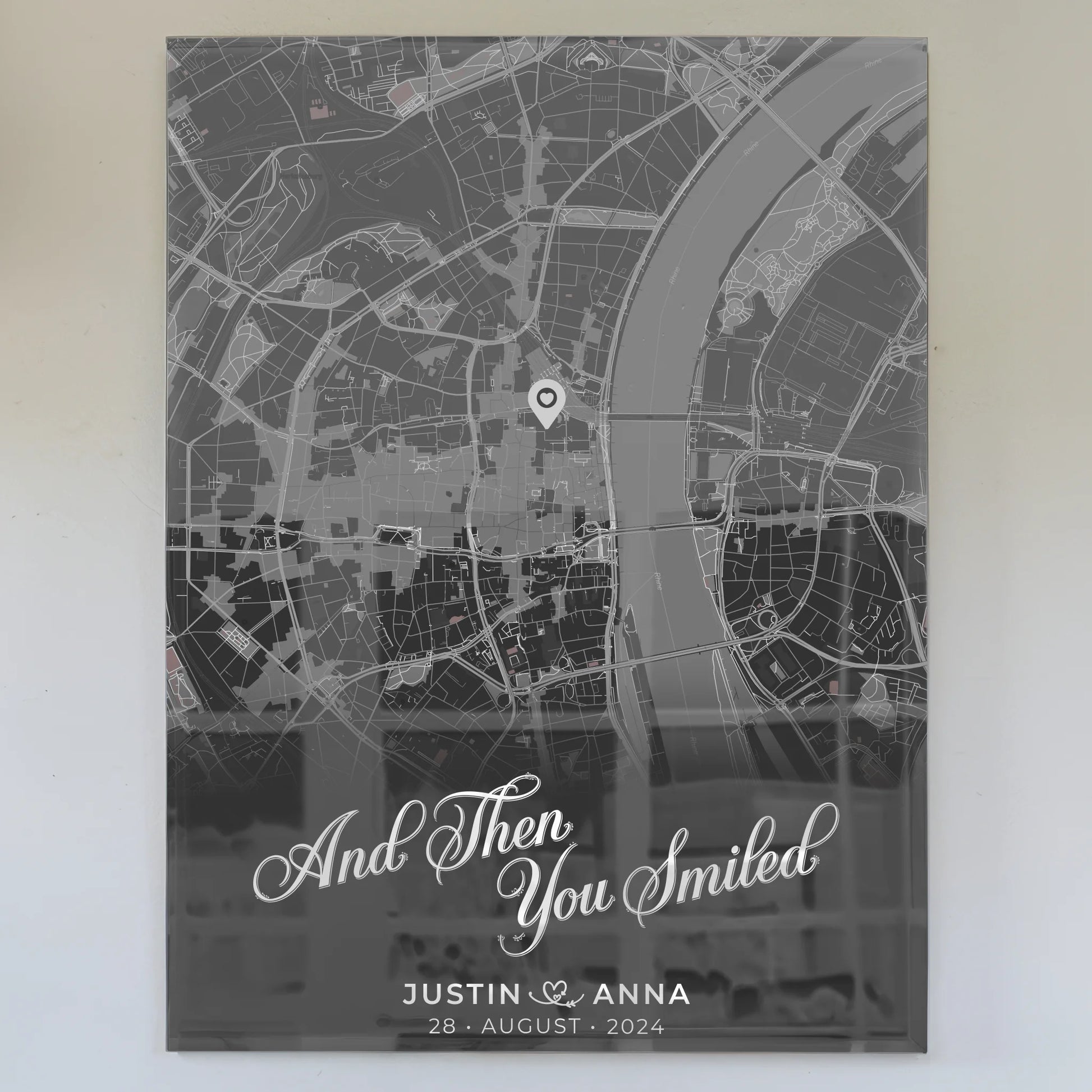 Personalisiertes Acrylglas Bild für Paare Dunkelgrau Stadtkarte All Of Me