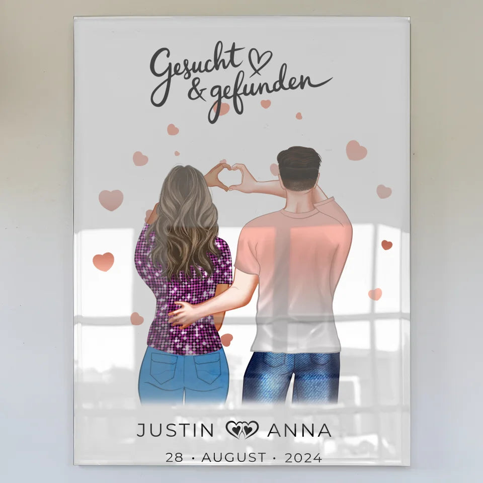 Entdecke die Schönheit des personalisierten Acrylglas Bildes für Paare, das nicht nur ein dekorativer Blickfang in jedem Zuhause ist, sondern auch eine liebevolle Erinnerung an eure gemeinsame Zeit. Lass dir dieses besondere Geschenk nicht entgehen und kreiere jetzt dein individuelles Acrylglas Bild mit Namen und Figuren. 'Gesucht & Gefunden' – hier findest du das perfekte, personalisierte Geschenk für deine Liebsten!