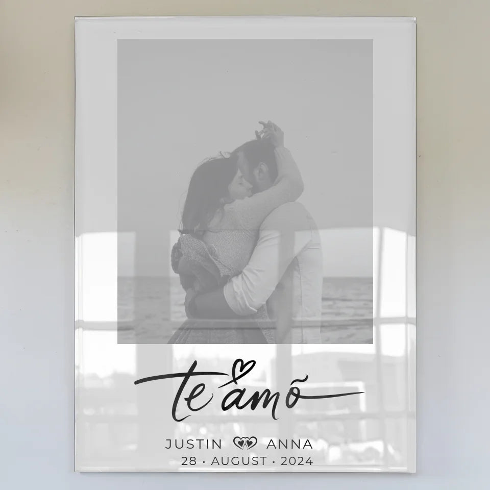 Personalisiertes Acrylglas Bild für Paare mit Namen Te Amo Foto Black & White