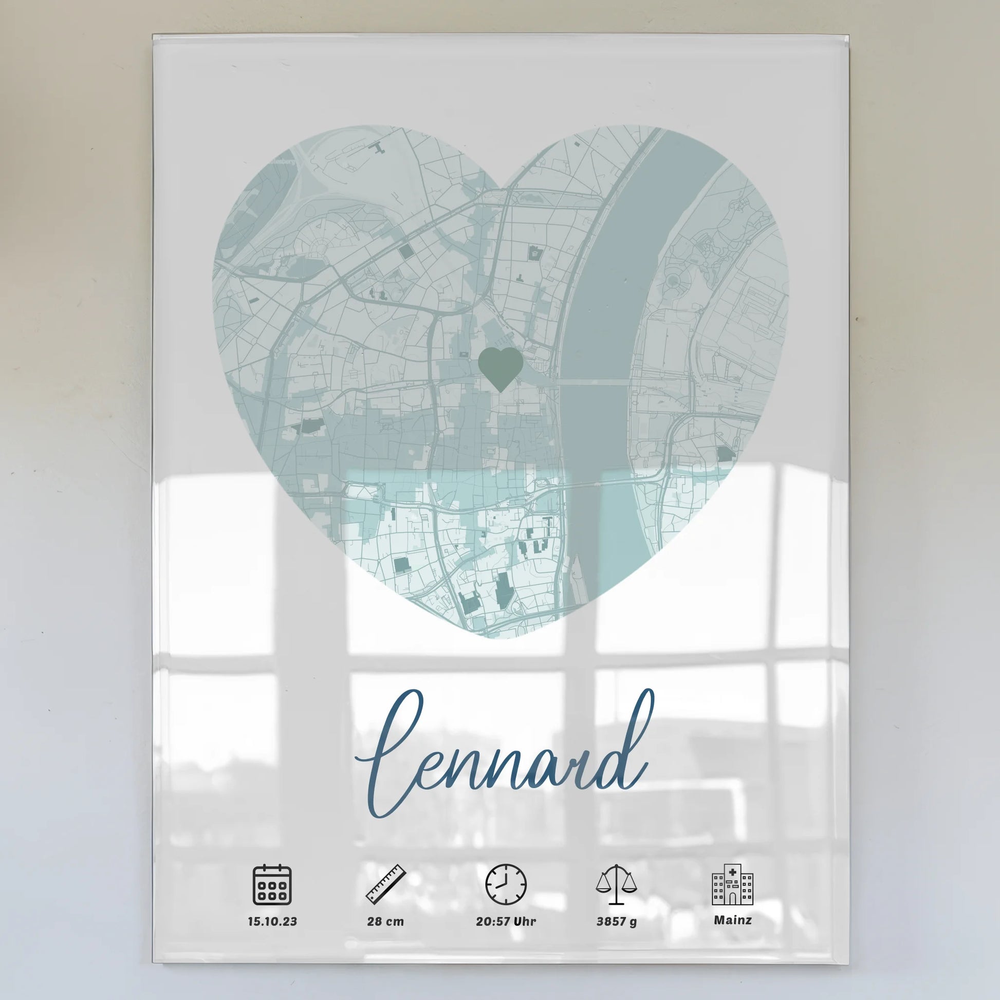 Schaffe ein unvergessliches Geschenk mit unserem personalisierten Acrylglas Bild, das die Geburtsdaten und die Geburtsort Karte deines kleinen Jungen in den Mittelpunkt stellt. Verschenke Erinnerungen, die ein Leben lang halten und sorge dafür, dass dein Geschenk für immer einen Platz im Herzen und Zuhause der Familie hat.