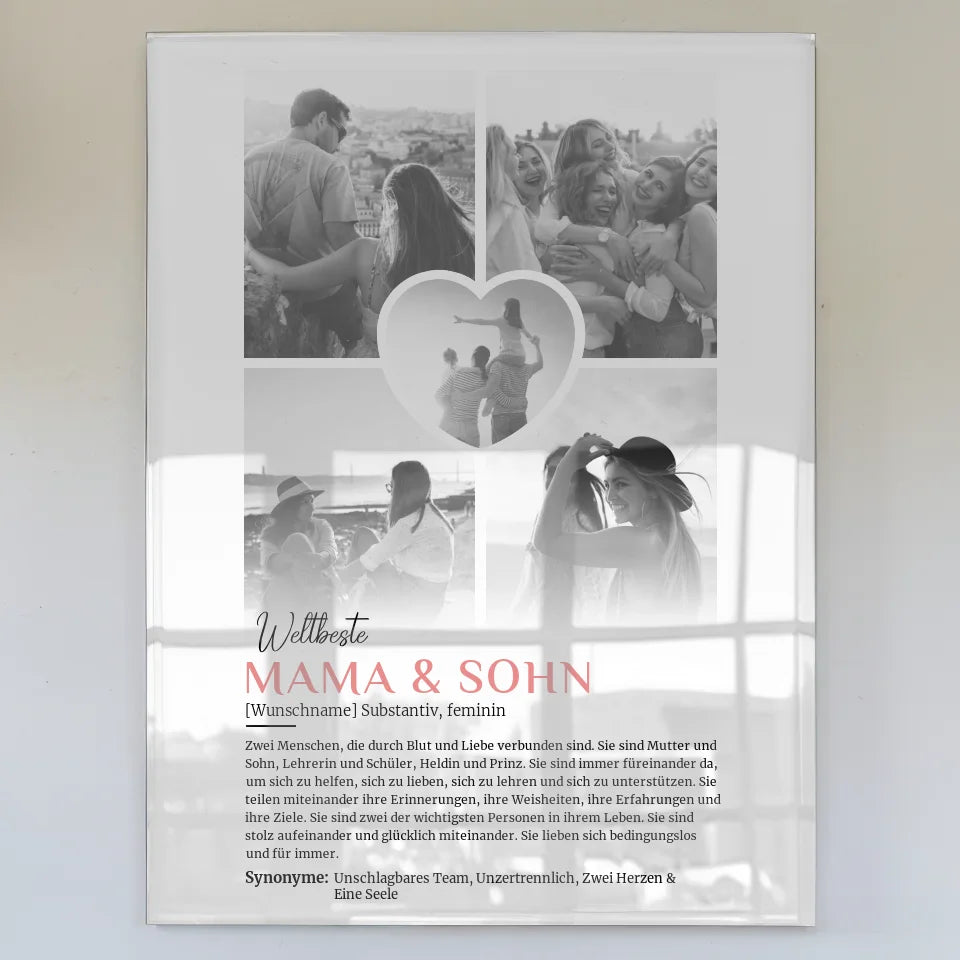 Personalisiertes Acrylglas Bild Mama Sohn 5 Fotos Black White
