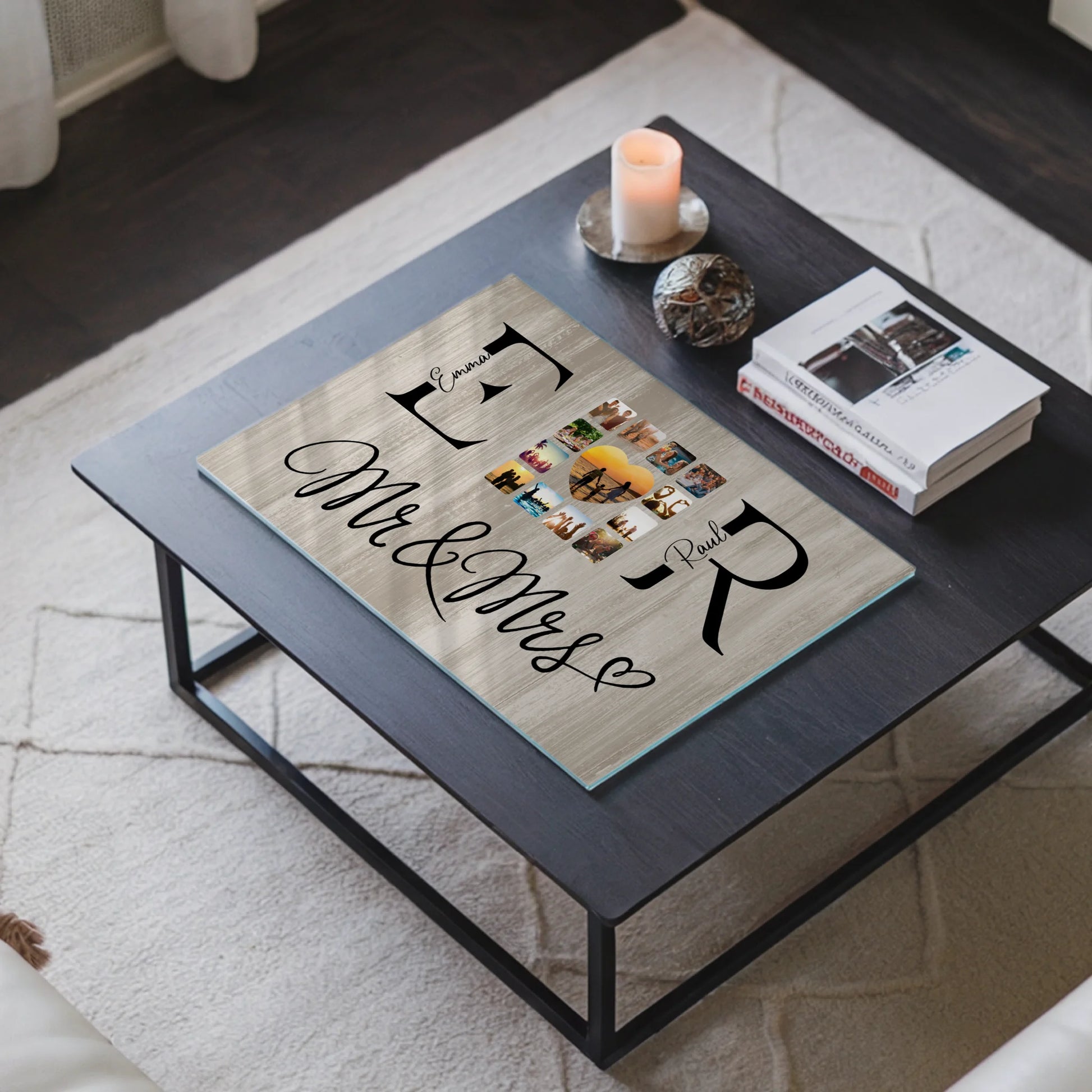 Personalisiertes Acrylglas Bild Mit Fotos Initialien und Fotos Mr & Mrs