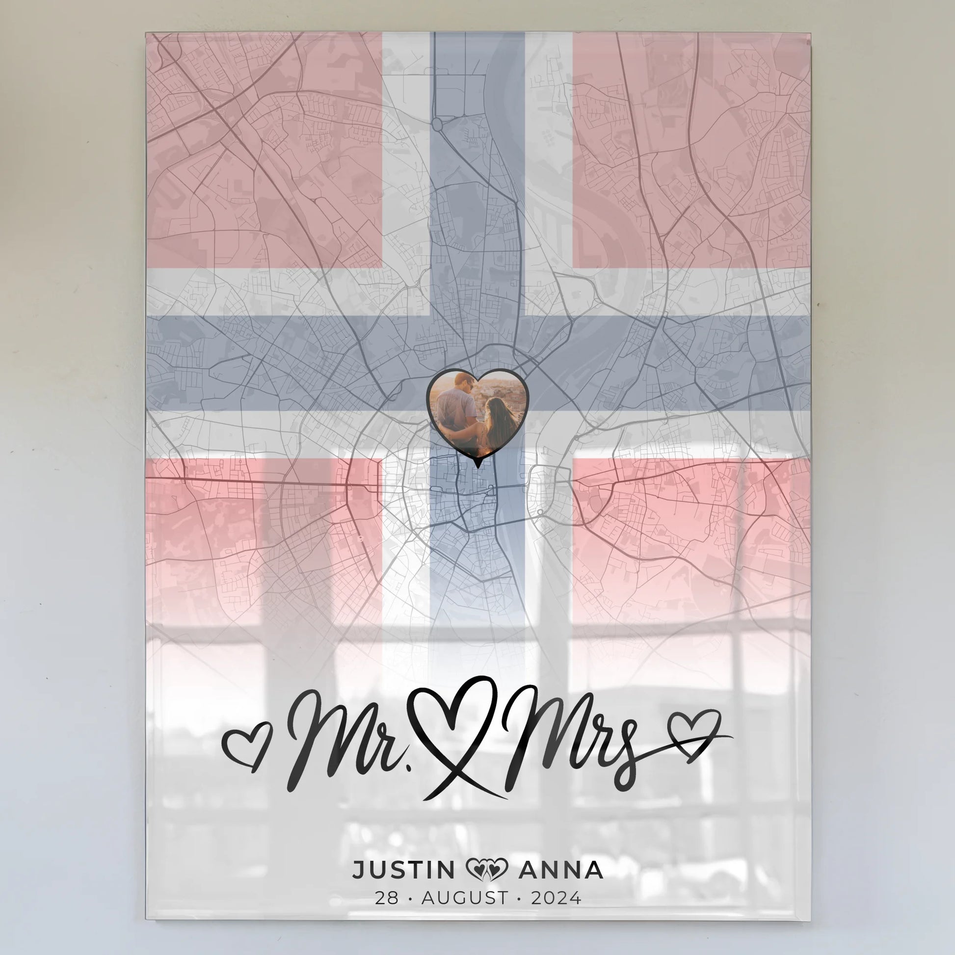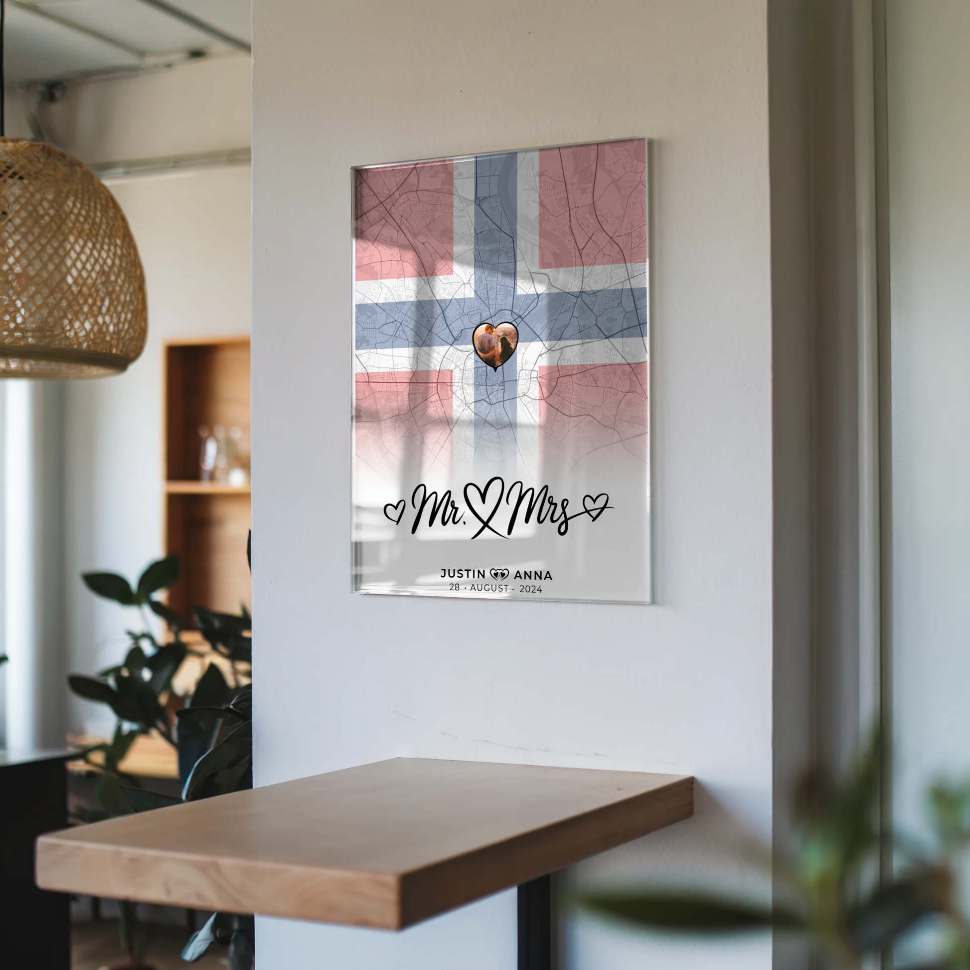 Personalisiertes Acrylglas Bild Mr & Mrs Stadtkarte Norwegen