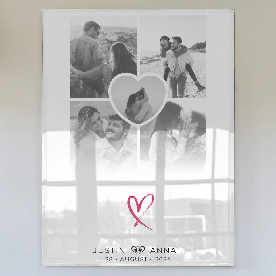 Wähle jetzt unser personalisiertes Acrylglas Bild Paare Fotocollage 5 Fotos You & Me und schaffe unvergängliche Erinnerungen, die für immer in Erinnerung bleiben.