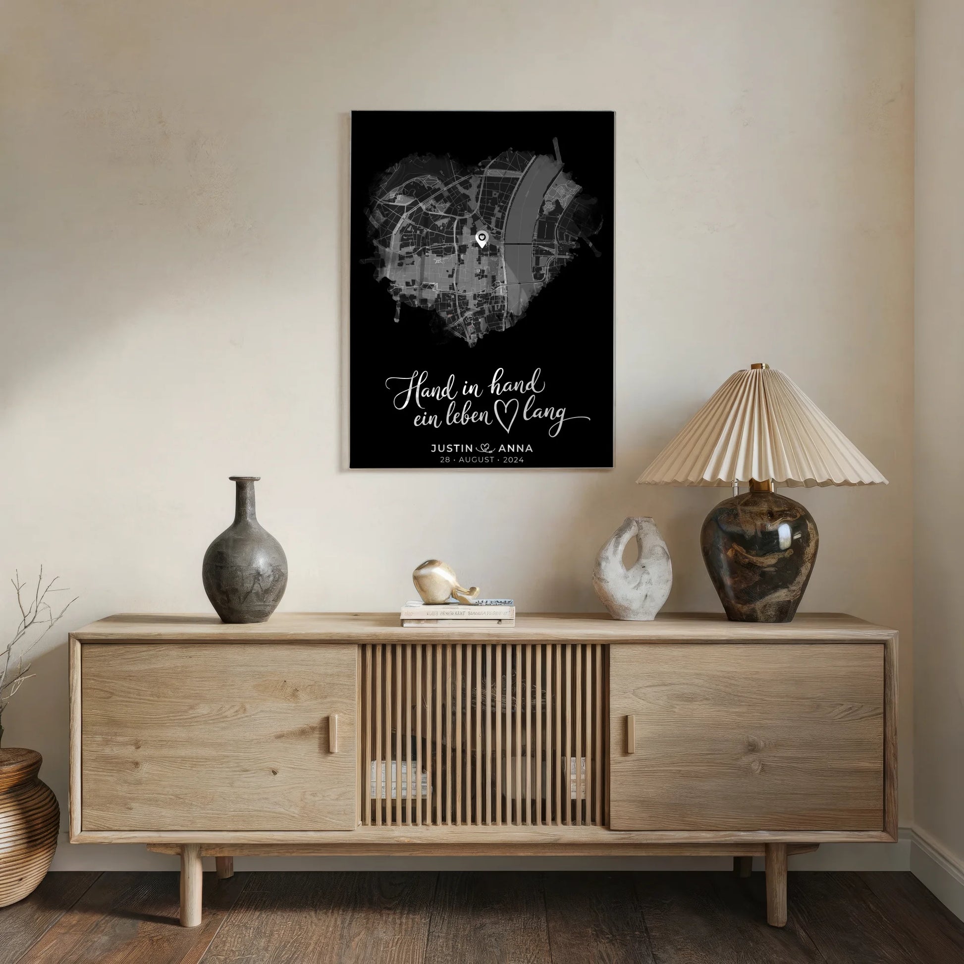 Personalisiertes Acrylglas Bild Paare Herzform Stadtkarte Hand In Hand