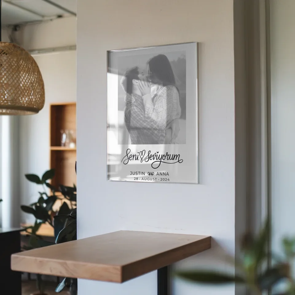 Personalisiertes Acrylglas Bild Paare Seni Seviyorum mit Namen