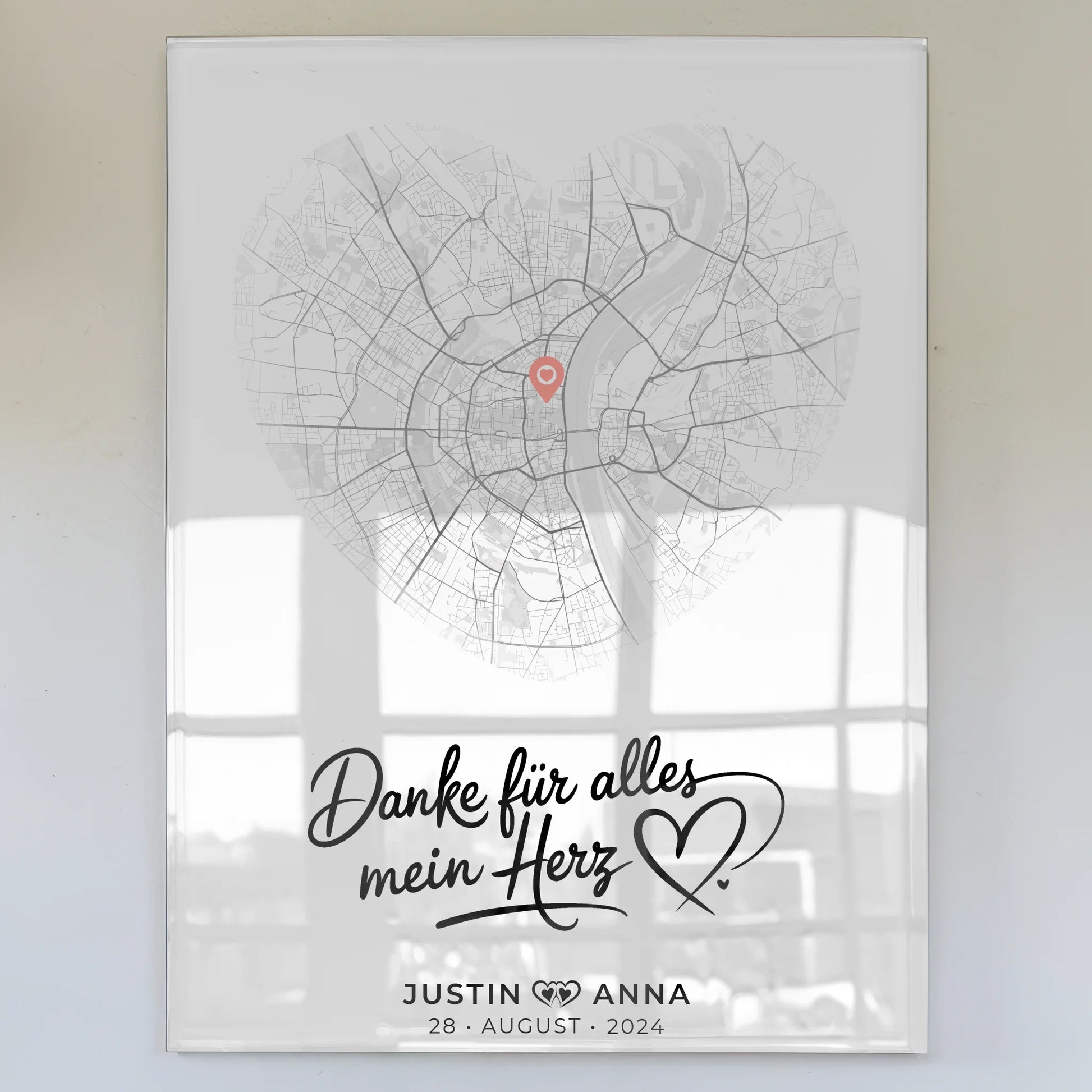 Personalisiertes Acrylglas Bild Paare Stadtkarte Danke Für Alles Mein Herz