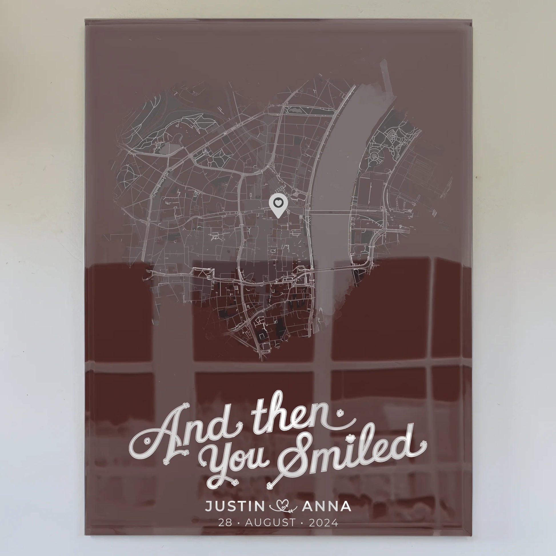 Personalisiertes Acrylglas Bild Paare Stadtkarte Herzform And Then You Smiled
