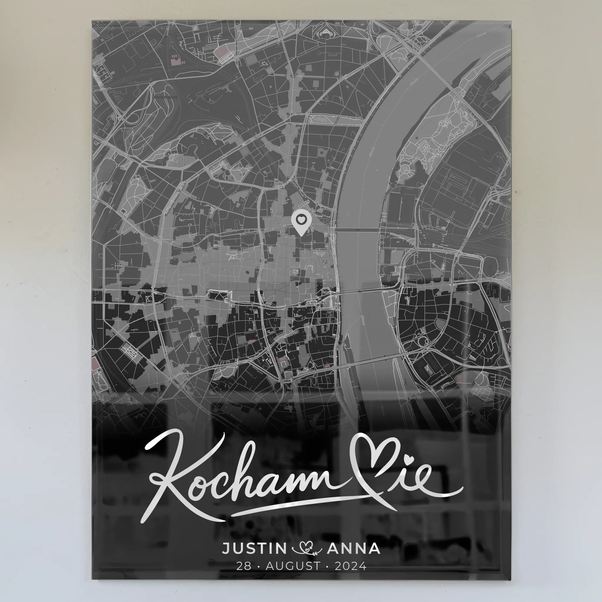 Personalisiertes Acrylglas Bild für Paare – Stadtkarte Schwarz 'Kocham Cie'