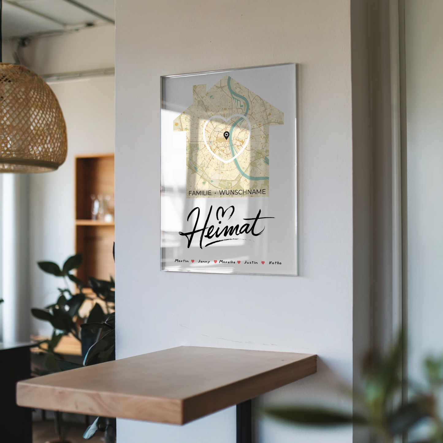 Bestelle jetzt das personalisierte Acrylglas Bild Stadtkarte Familie mit Nachname & Namen und sichere Dir ein Stück Heimat, das ein Leben lang hält!