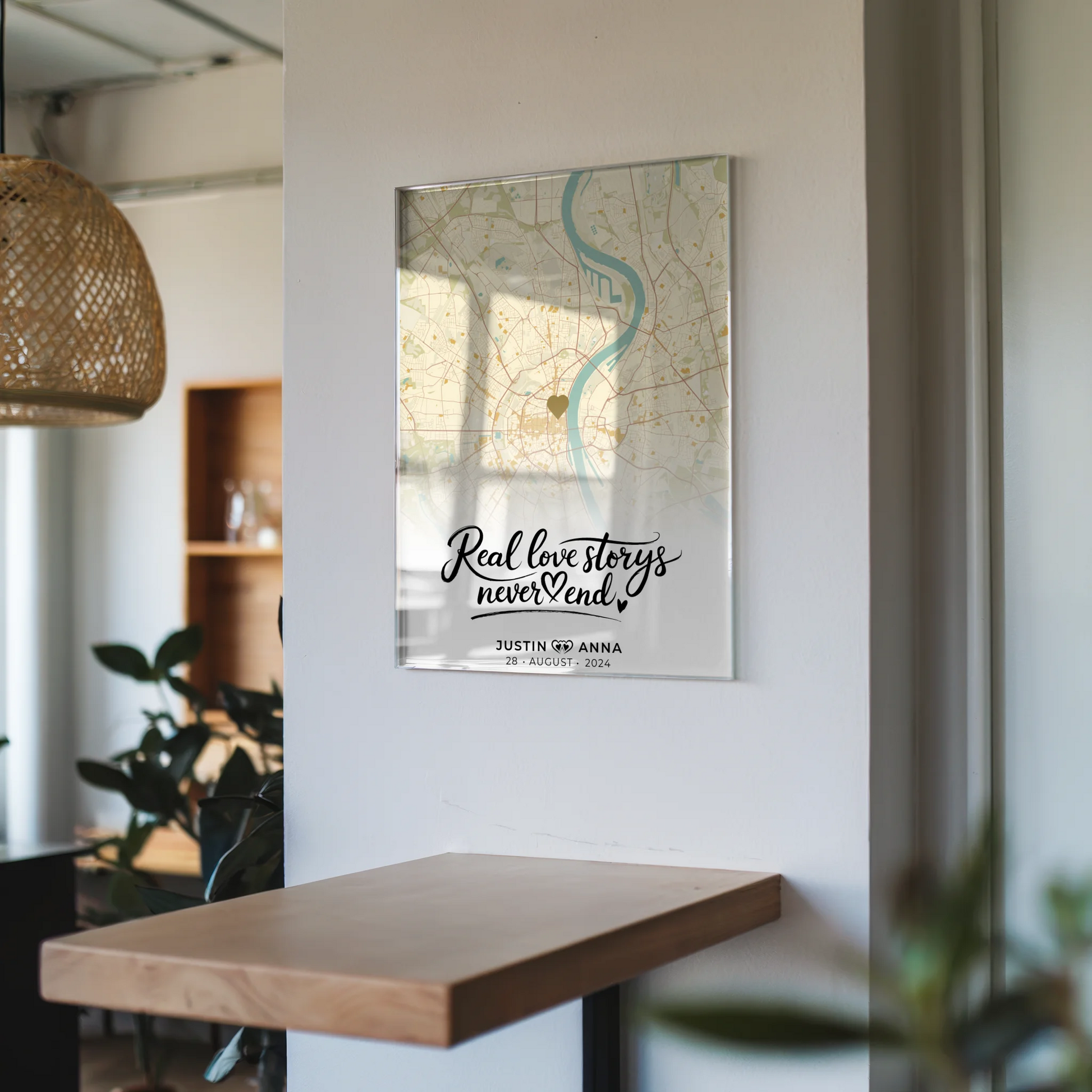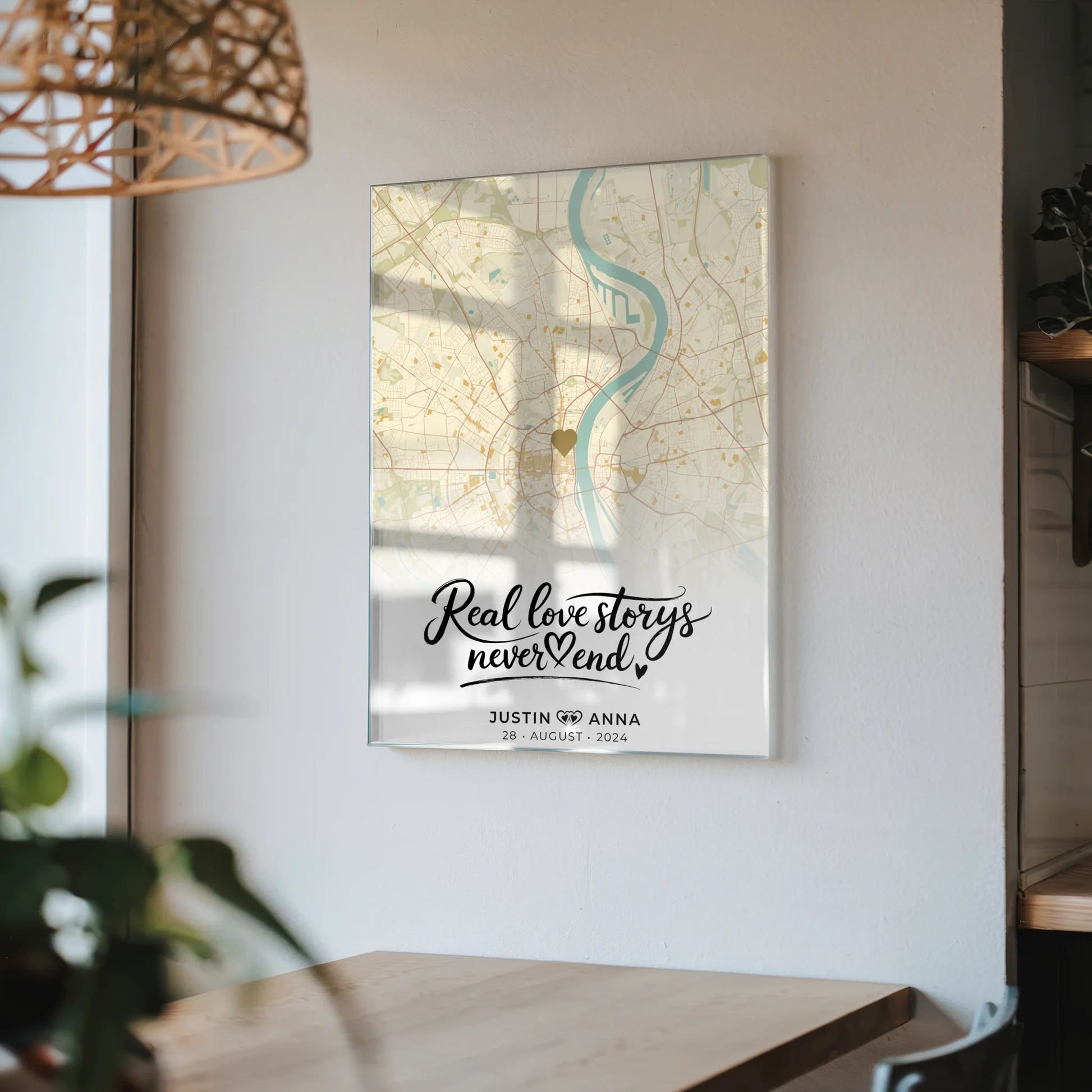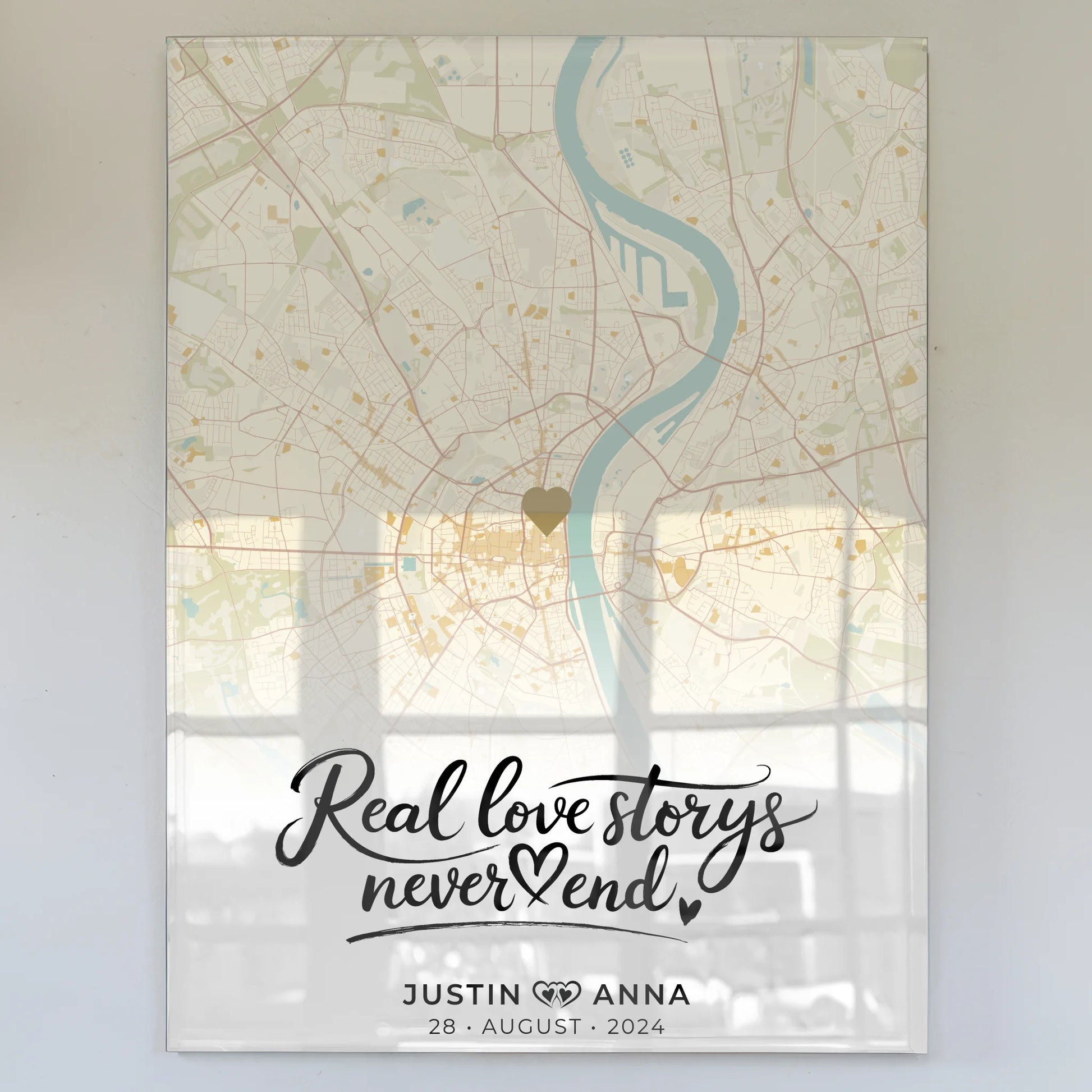 Personalisiertes Acrylglas Bild Stadtkarte Paare Real Love Storys Vintage
