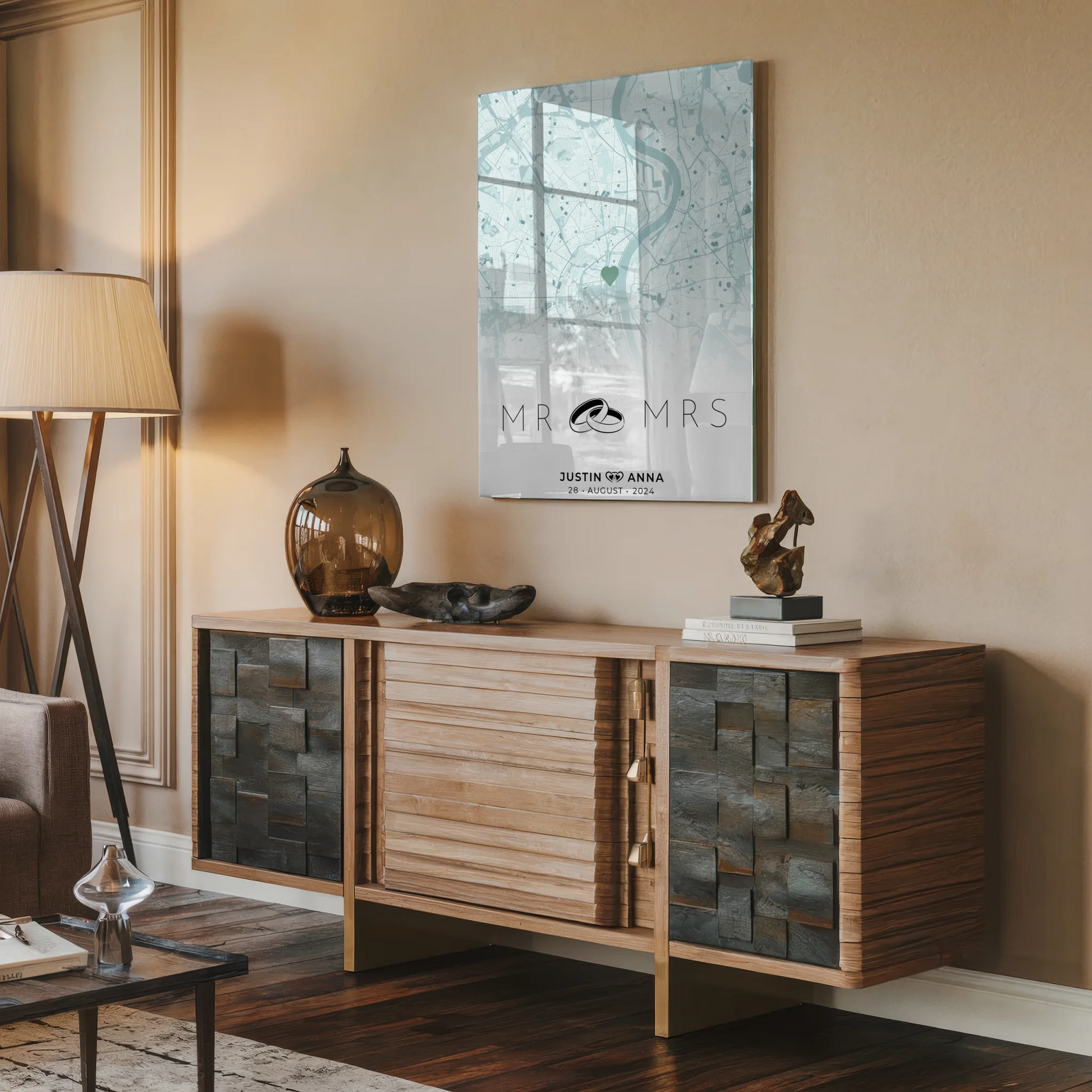 Personalisiertes Acrylglas Bild Stadtkarten für Paare Mr & Mrs Mintgrün Wo Alles Begann
