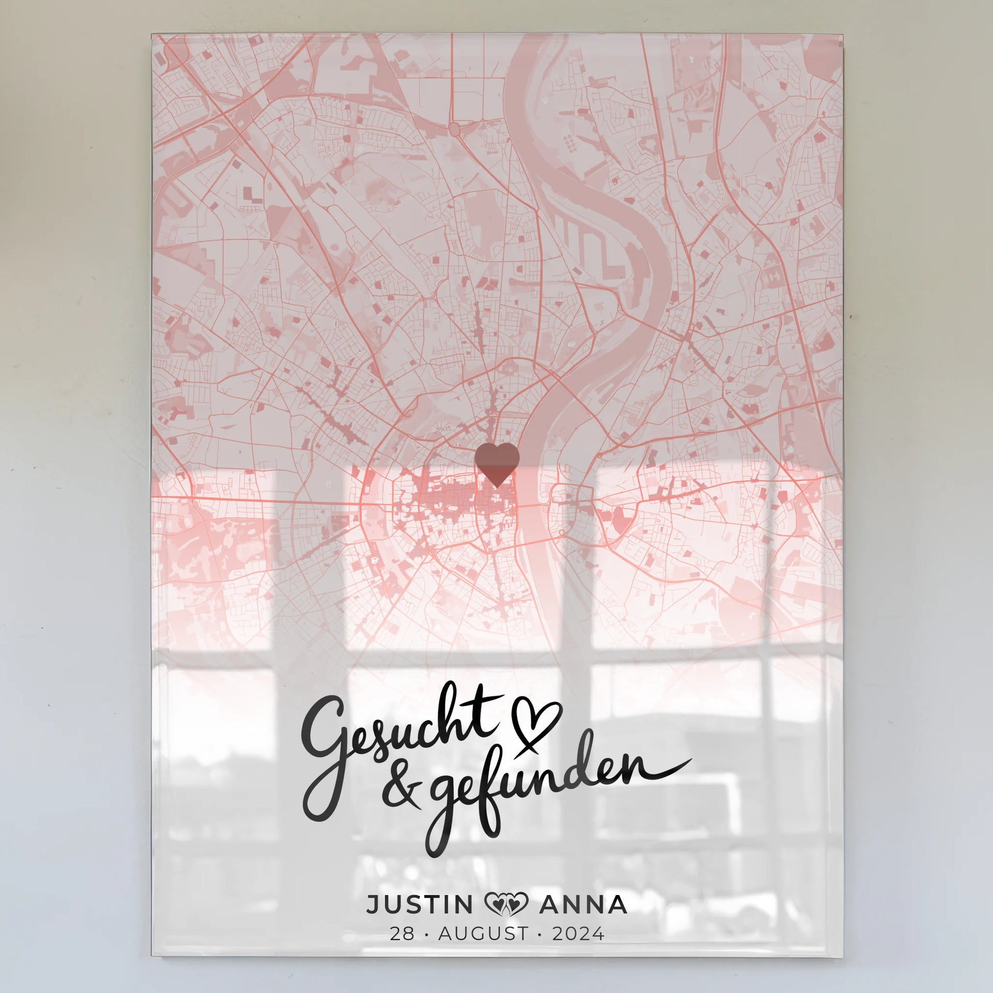 Personalisiertes Acrylglas Bild Stadtkarten für Paare Roserot Wo Alles Begann