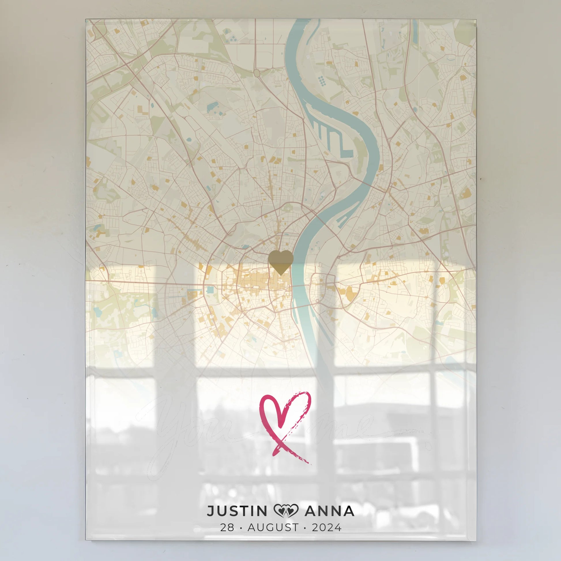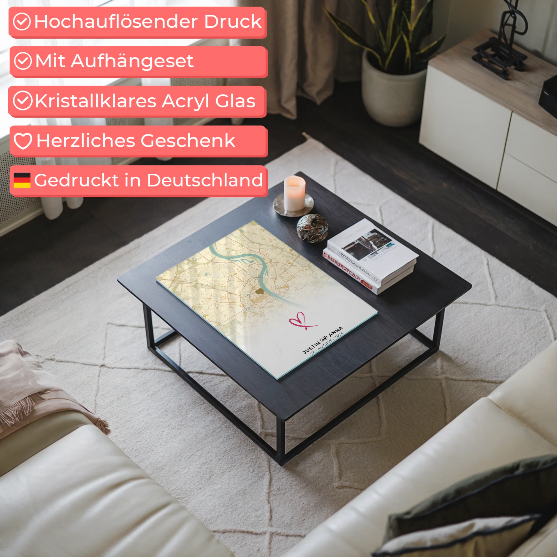 Personalisiertes Acrylglas Bild Stadtkarten für Paare You & Me Vintage