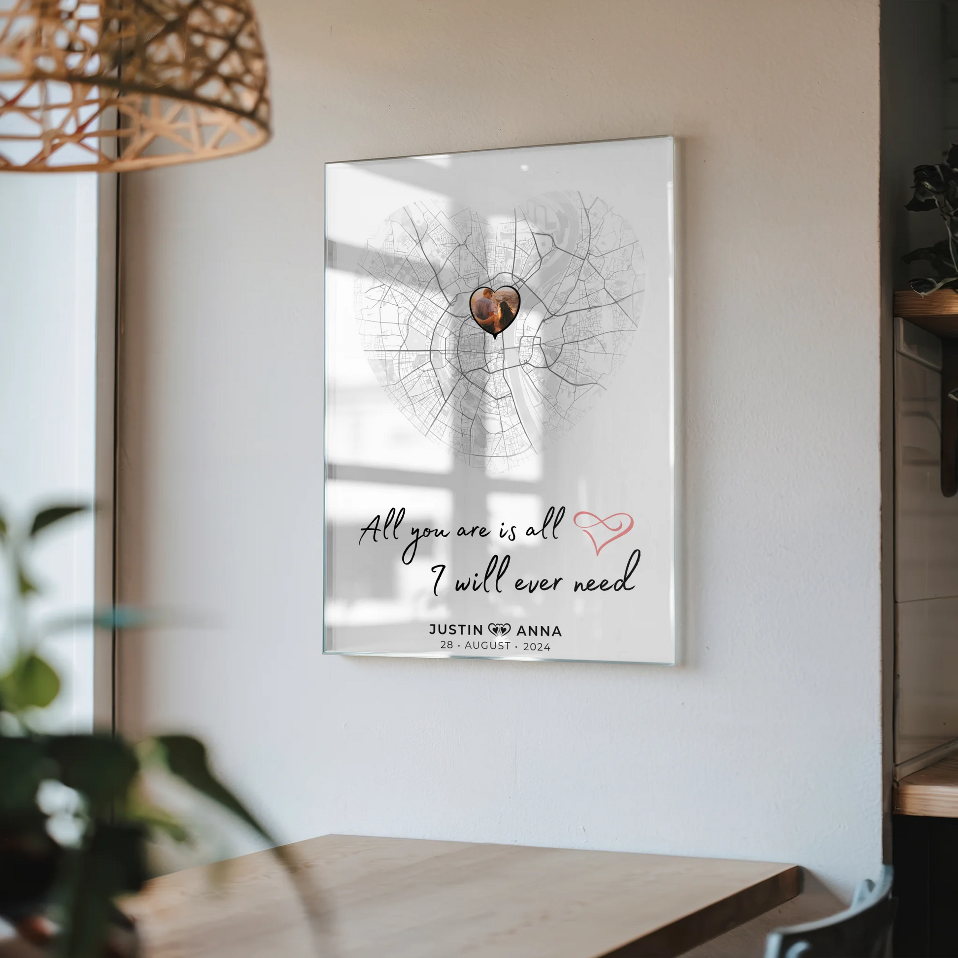 Personalisiertes Acrylglas Bild Stadtkarten Paare Herz All You Are Is All I Will Ever Need