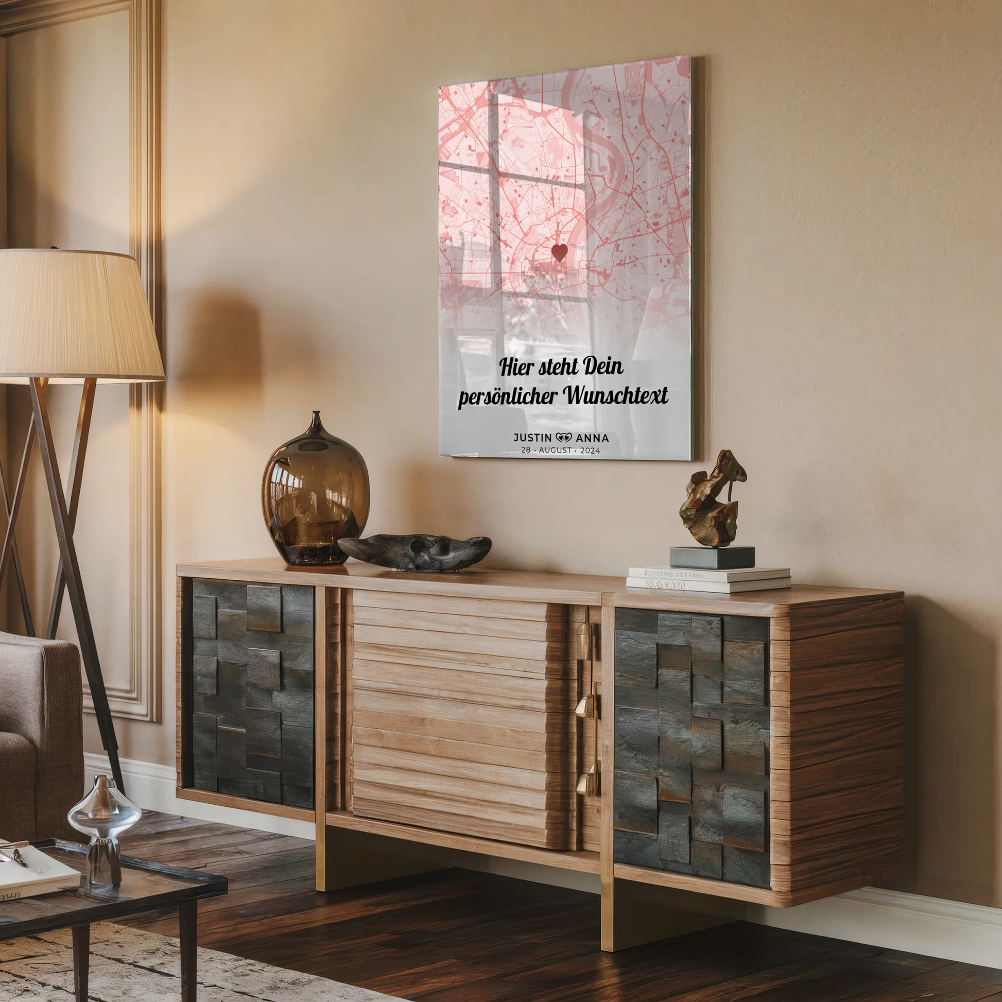 Personalisiertes Acrylglas Bild Stadtkarten Paare Herz Altrosa Roserot