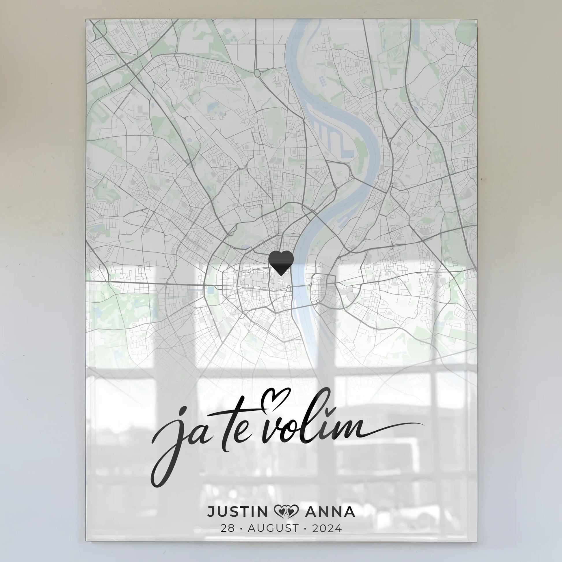 Entdecke das personalisierte Acrylglas Bild Stadtkarten Paare Ja Te Volim