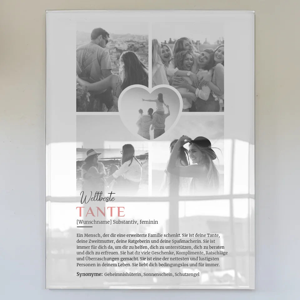 Personalisiertes Acrylglas Bild Tante mit 5 Fotos Schwarz Weiß