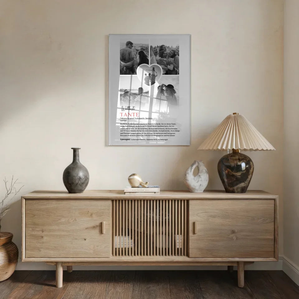 Suchst du nach einem einzigartigen Geschenk für deine Tante? Unser personalisiertes Acrylglas Bild Tante mit 5 Fotos in Schwarz Weiß ist die perfekte Wahl. Dieses stilvolle Acrylglas Bild lässt sich ganz nach deinen Wünschen gestalten: wähle 5 deiner liebsten Fotos und füge den Namen deiner Tante hinzu. Mit dieser persönlichen Note wird das Geschenk zu einem unvergesslichen Andenken, das deine Tante lieben wird.