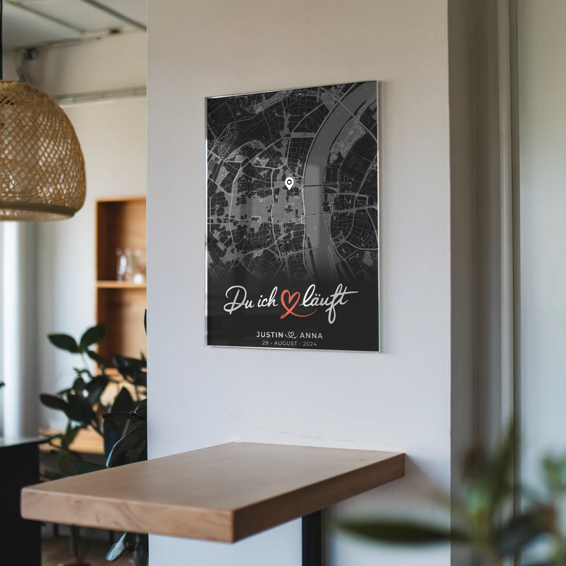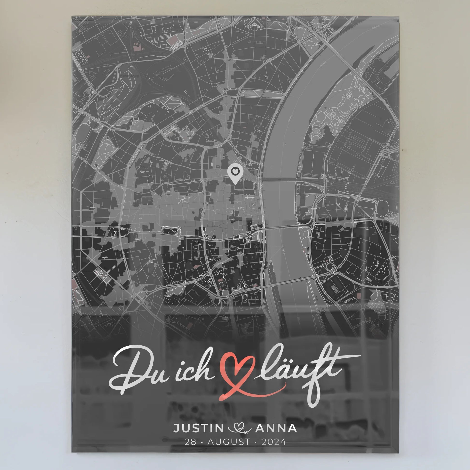 Personalisiertes Acrylglas Bilder Paare Stadtkarte Dunkelgrau Du Ich Läuft