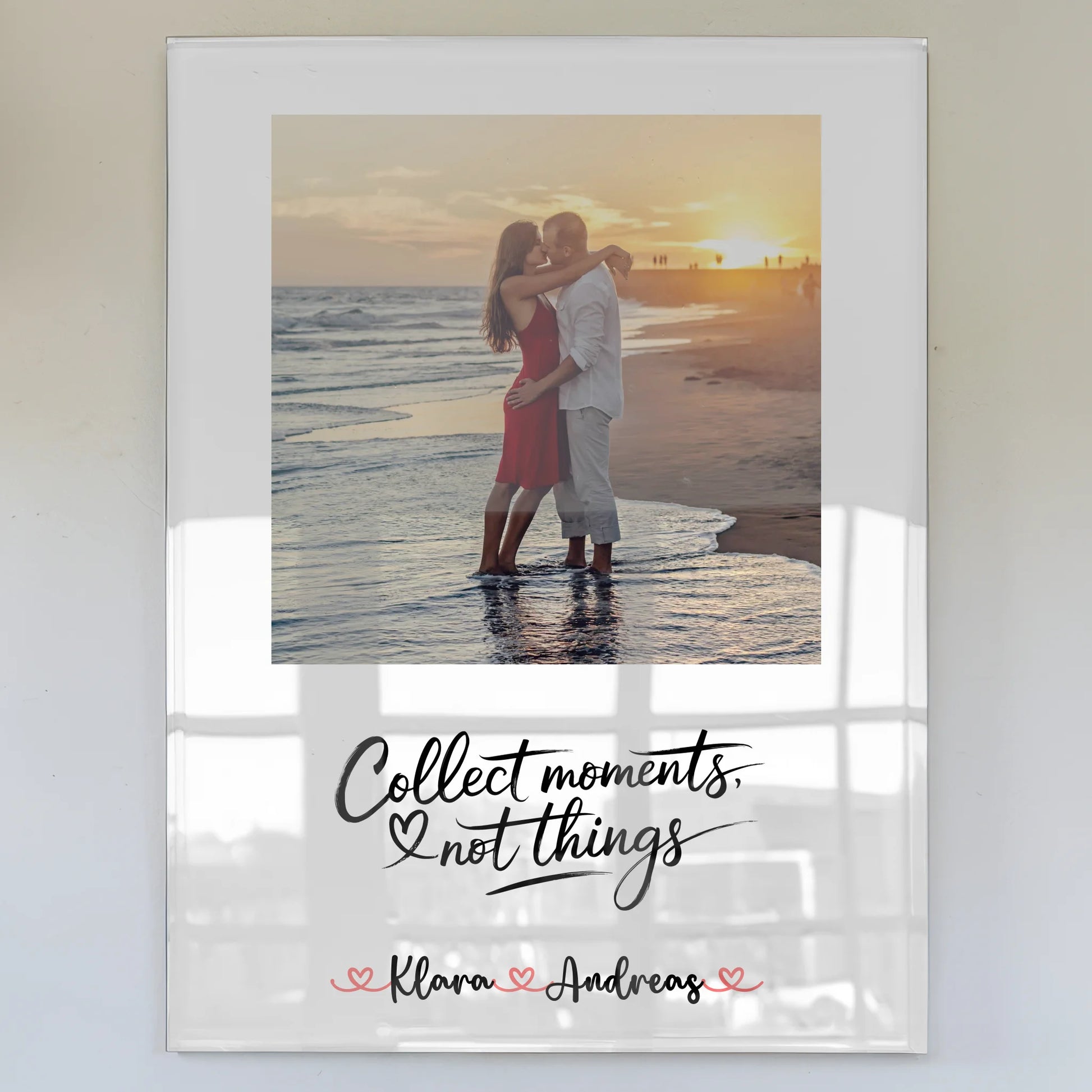 Personalisiertes Acrylglas Collect Moments Not Things für Paare mit Namen & Foto