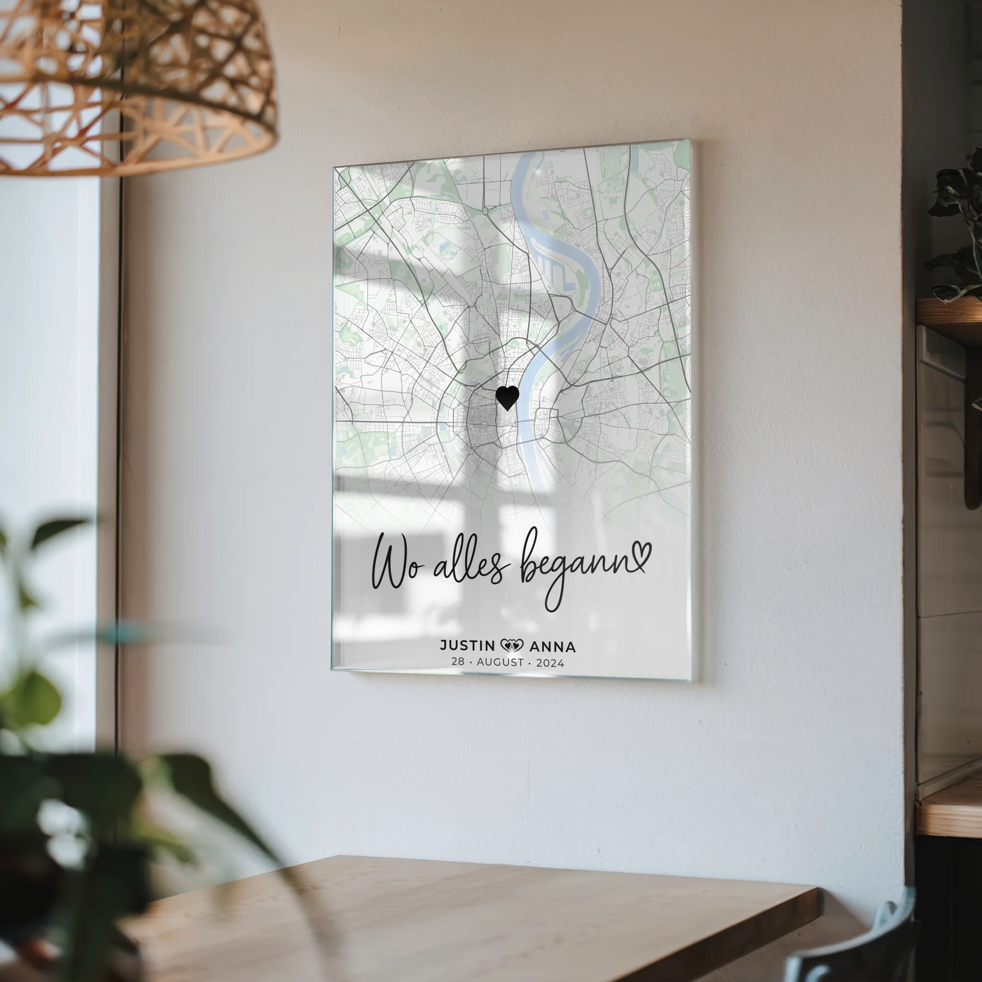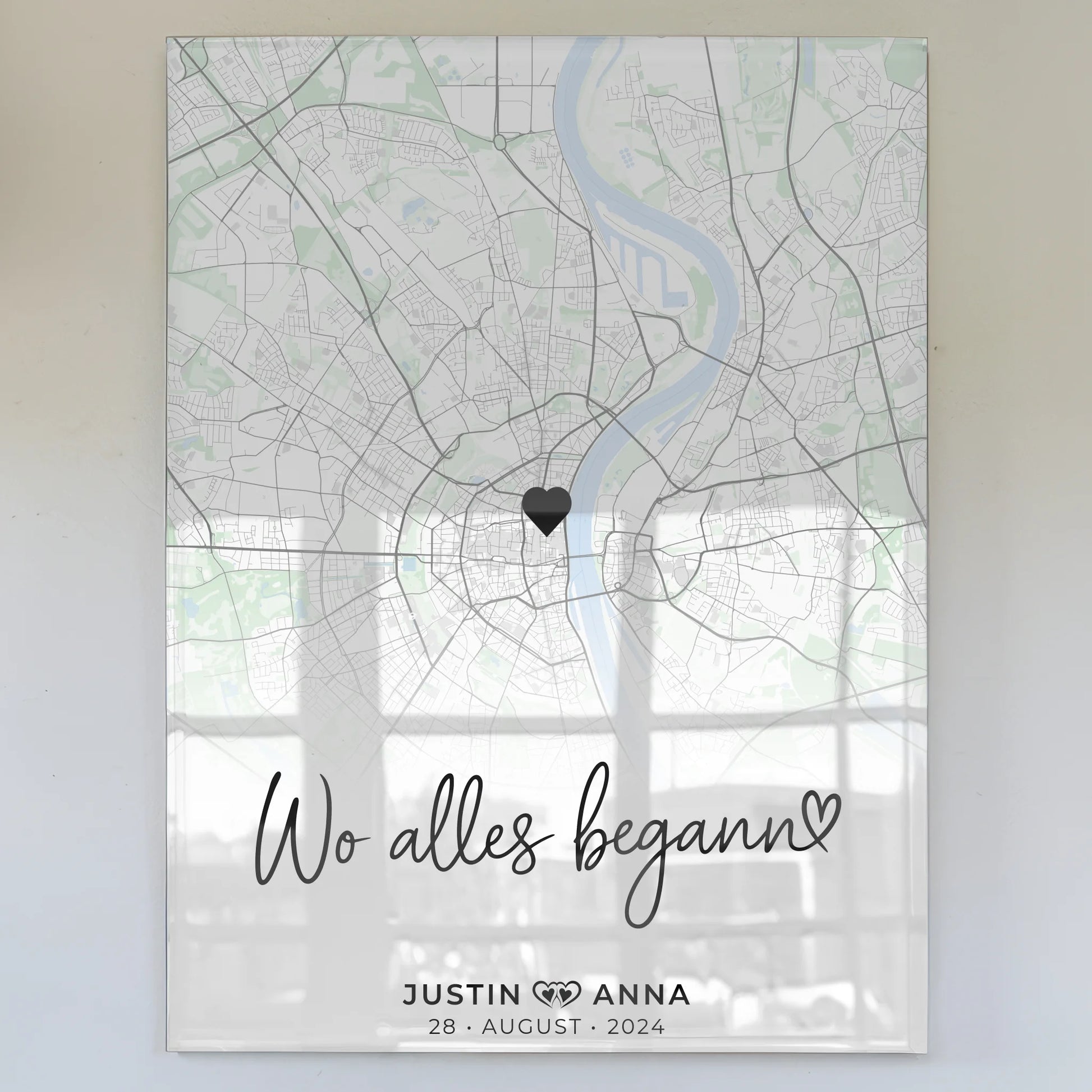 Personalisiertes Acrylglas Stadtkarte Bild Paare Wo Alles Begann