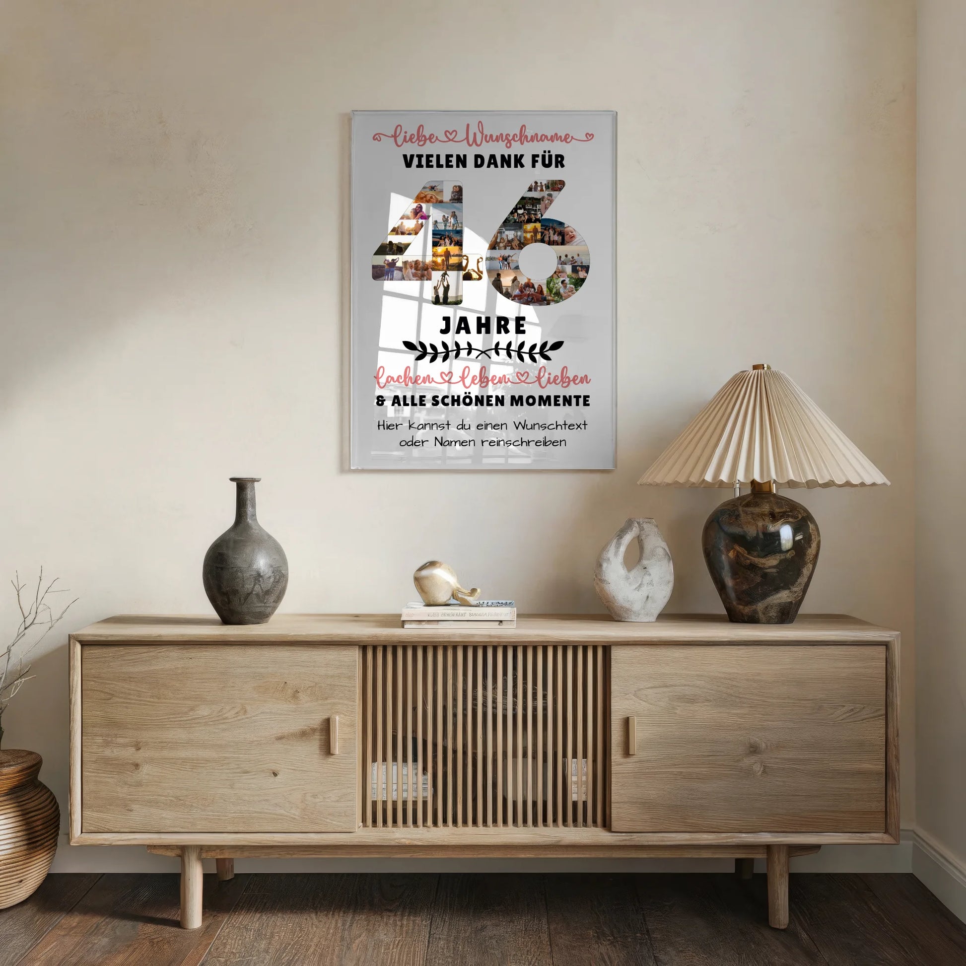 Überrasche deine Liebsten mit einem einzigartigen Geschenk zum 46 Geburtstag – dem personalisierten Acrylglas Wandbild. Dieses besondere Geschenk ist perfekt für Papa, Mama, Schwester, Bruder, Sohn, Tochter, beste Freundin, Neffe, Nichte, Oma, Opa oder Tante und macht jeden Geburtstag unvergesslich. Das personalisierte Acrylglas Wandbild kannst du individuell gestalten: Füge über 20+ Fotos hinzu, wähle einen Wunschtext sowie ein Hintergrundbild und füge den Namen deiner Liebsten ein. So entsteht ein einzigartiges Kunstwerk, das die schönsten Erinnerungen und persönlichen Botschaften vereint. Das personalisierte Acrylglas Wandbild ist nicht nur ein dekoratives Highlight für jede Wohnung, sondern auch ein emotionales Geschenk für alle Familienmitglieder und Freunde. Zeige deine Wertschätzung und Liebe mit diesem besonderen Präsent zum 46 Geburtstag – perfekt geeignet für jeden Anlass im Familien- oder Freundeskreis. Mache den Ehrentag deines Lieblings unvergesslich mit einem individuellen Geschenk, das garantiert in Erinnerung bleibt.
