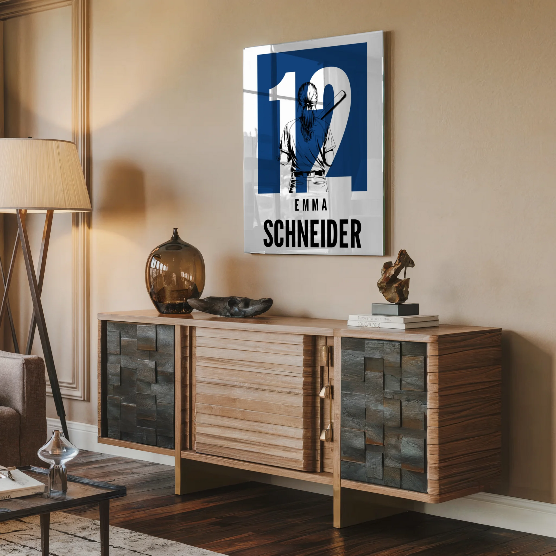 Personalisiertes Acrylglas Wandbild magnetisch Baseball Baseballspielerin Geschenk für Tochter