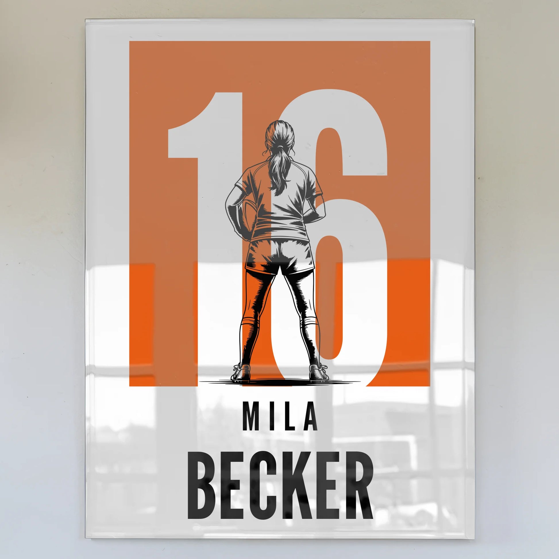Personalisiertes Acrylglas Wandbild Rugby Rugbyspielerin Geschenk für Mädchen Turnier Urkunde