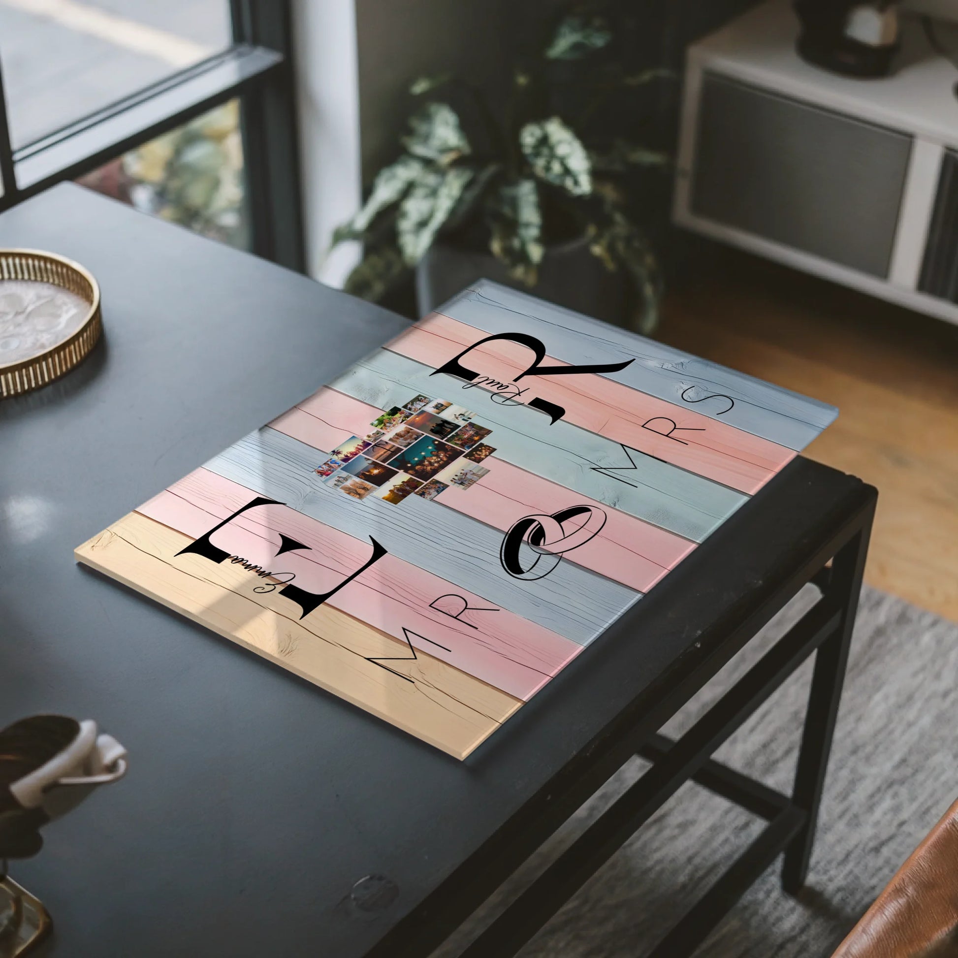 Personalisiertes Acrylglasbild Magnetisch Mit Initialien Namen und Fotos Mr & Mrs