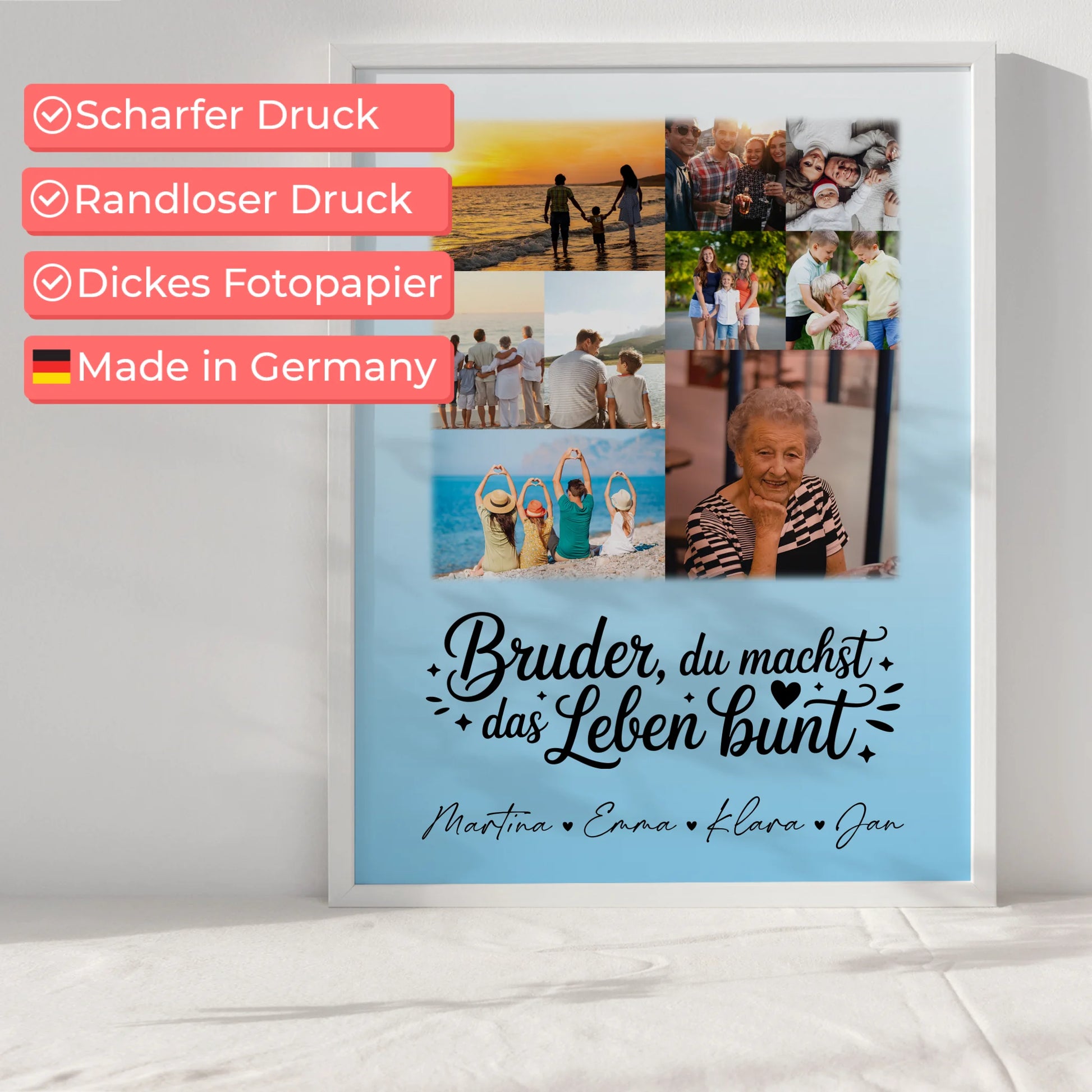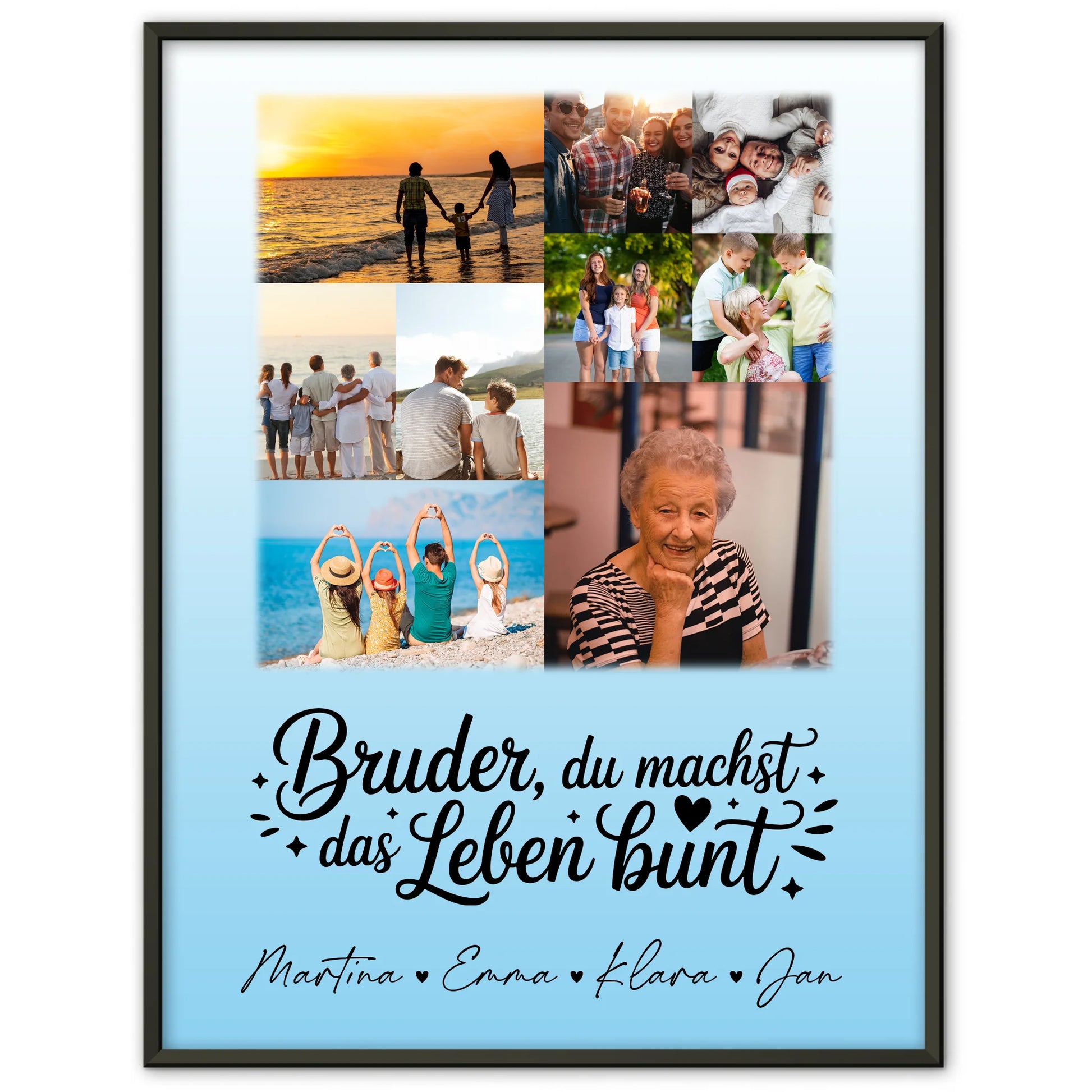 Personalisiertes Bruder Poster mit 9 Fotos Bruder du machst bunt Geschenk für Bruder