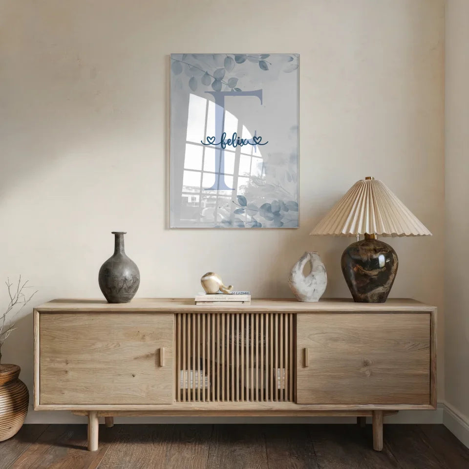 Personalisiertes Buchstaben Acrylglas Bild Buchstabe F Blau Jungen