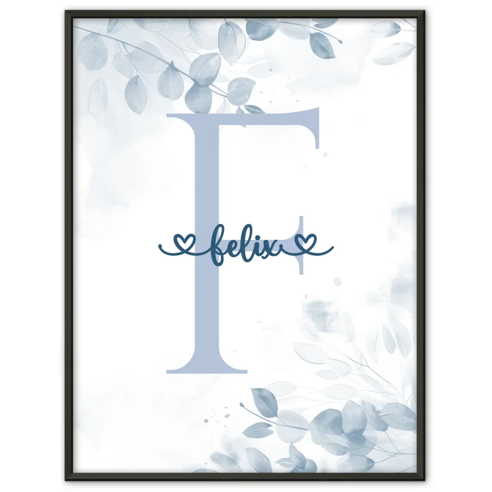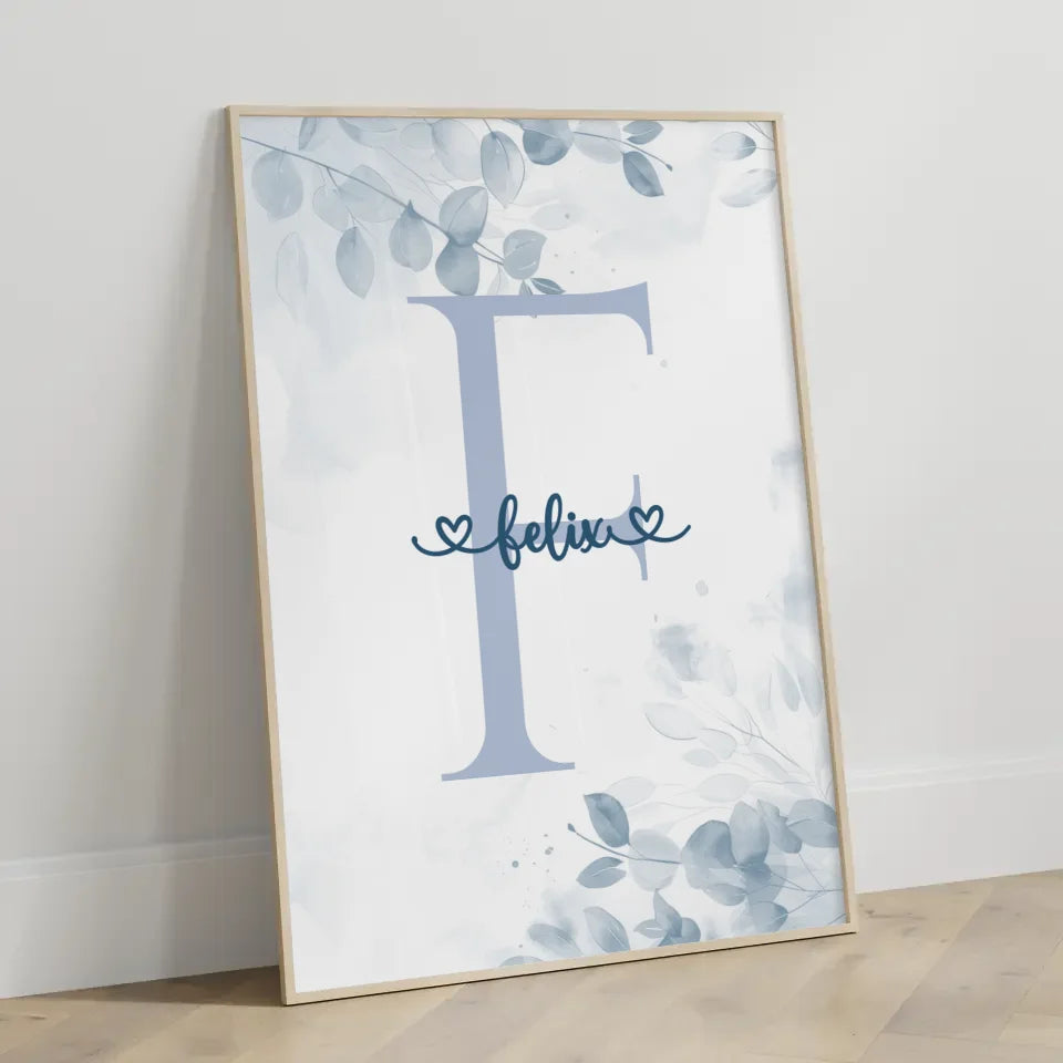 Personalisiertes Buchstaben Poster Buchstabe F Blau für Jungen