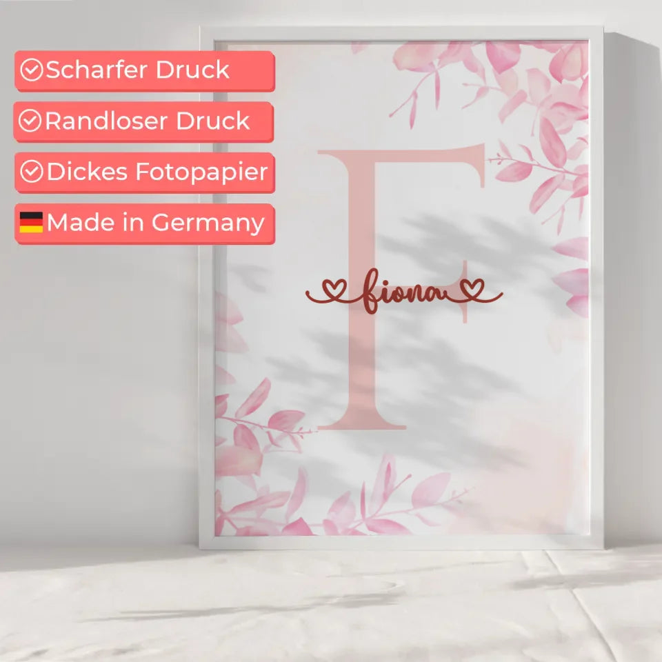 Personalisiertes Buchstaben Poster Buchstabe F für Mädchen individuell gestalten
