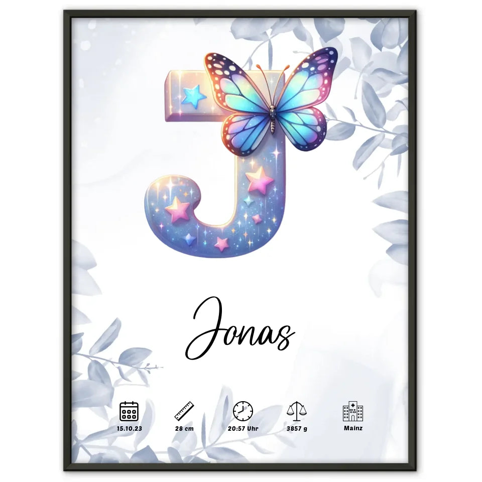 Das personalisiertes Buchstaben Poster Buchstabe J Eucalyptus Blau Geburt A-Z ist das ideale Geschenk zur Geburt oder zum Geburtstag. Mit diesem einzigartigen Poster kannst du die wichtigsten Geburtsdaten wie Gewicht, Größe, Uhrzeit und Datum individuell gestalten. Es ist ein wunderschöner Blickfang für jedes Kinderzimmer und gleichzeitig eine bleibende Erinnerung an den besonderen Tag.