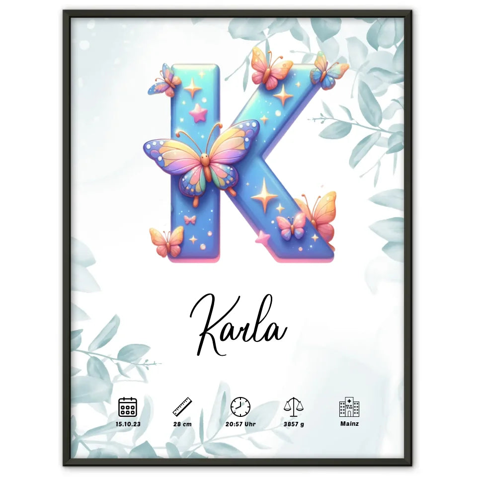 Personalisiertes Buchstaben Poster Buchstabe K für Geburt A-Z