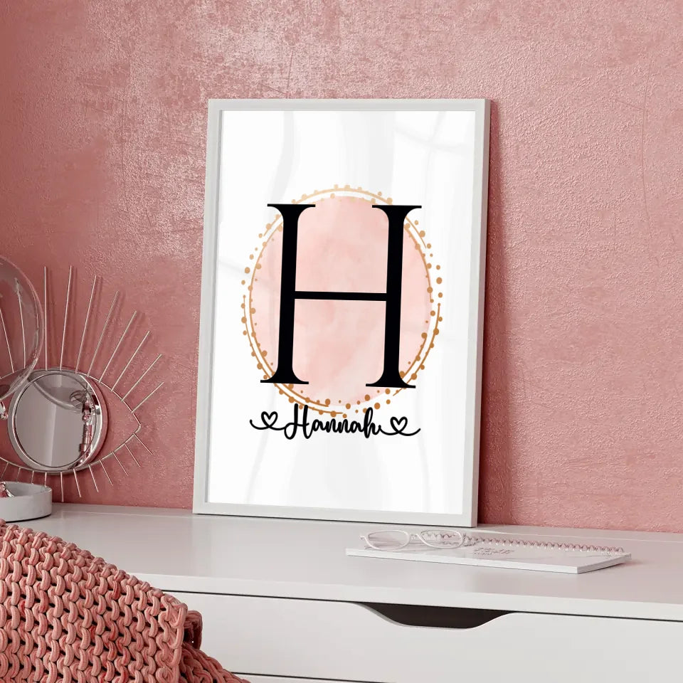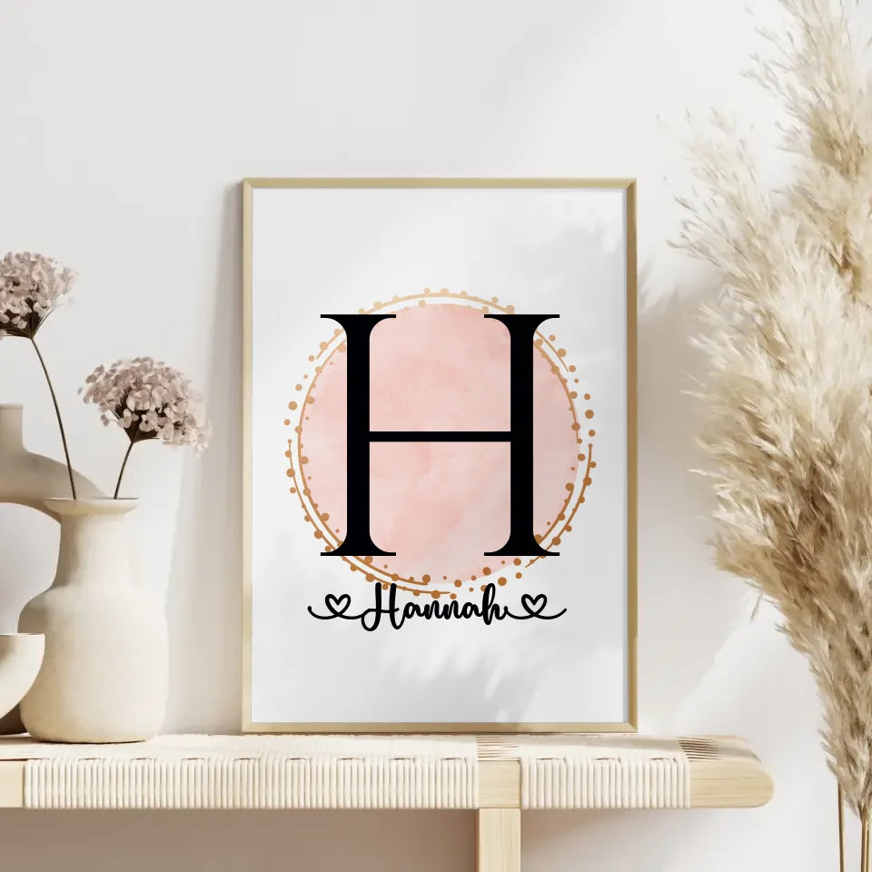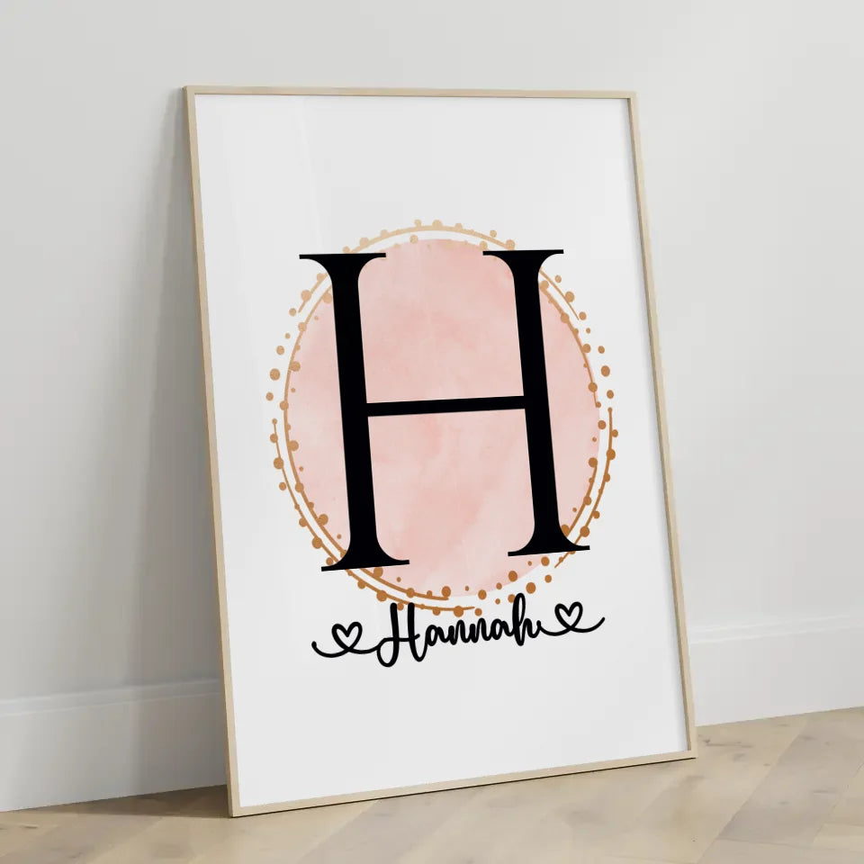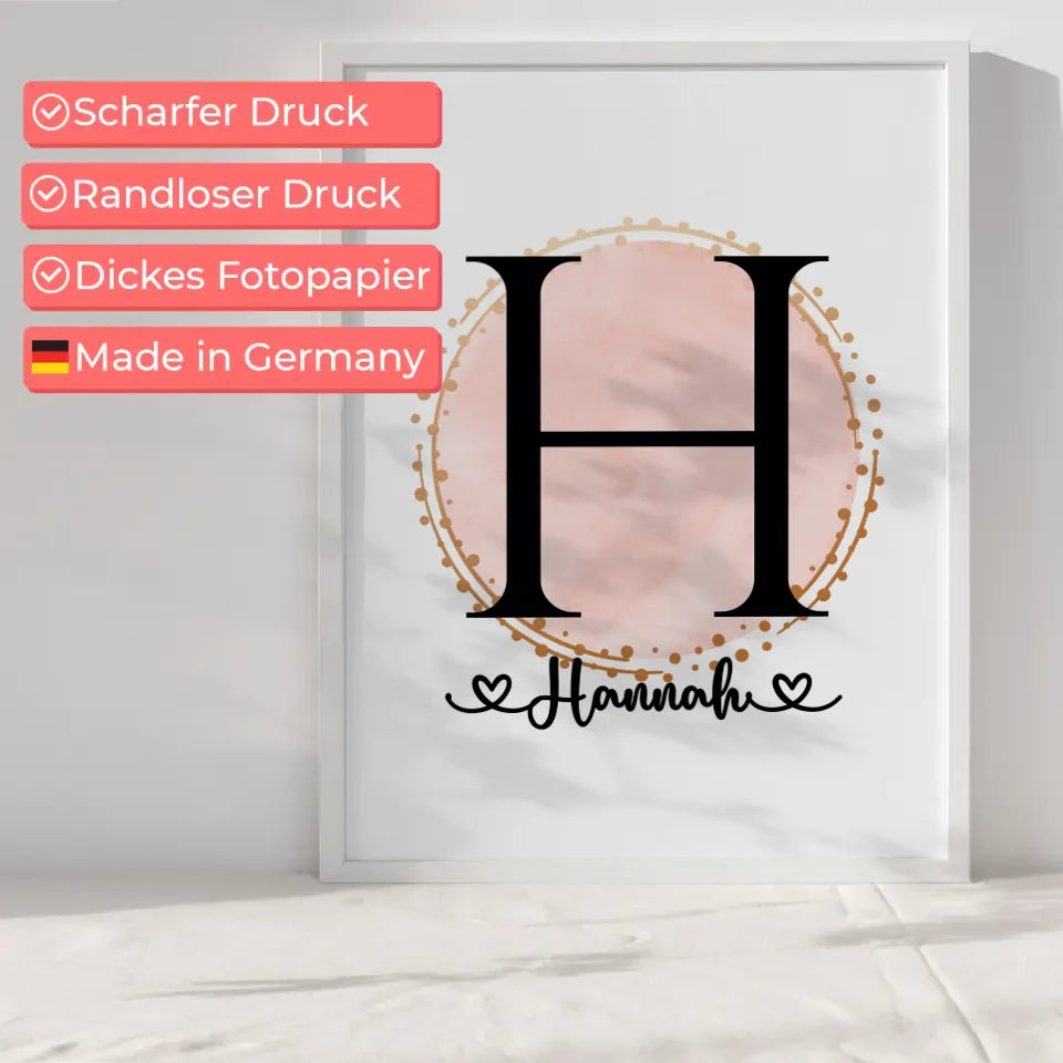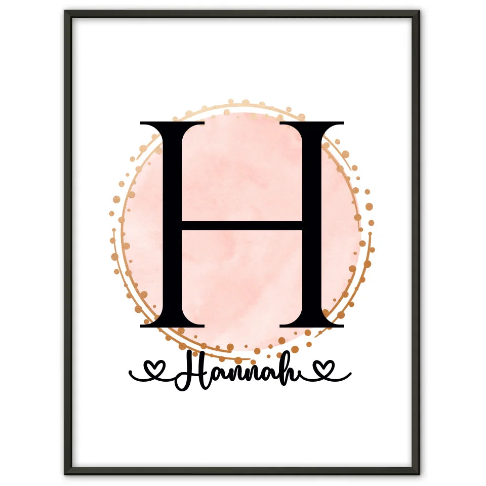 Entdecke das personalisierte Buchstaben Poster H Wasserfarbe Kreis Rosa A-Z