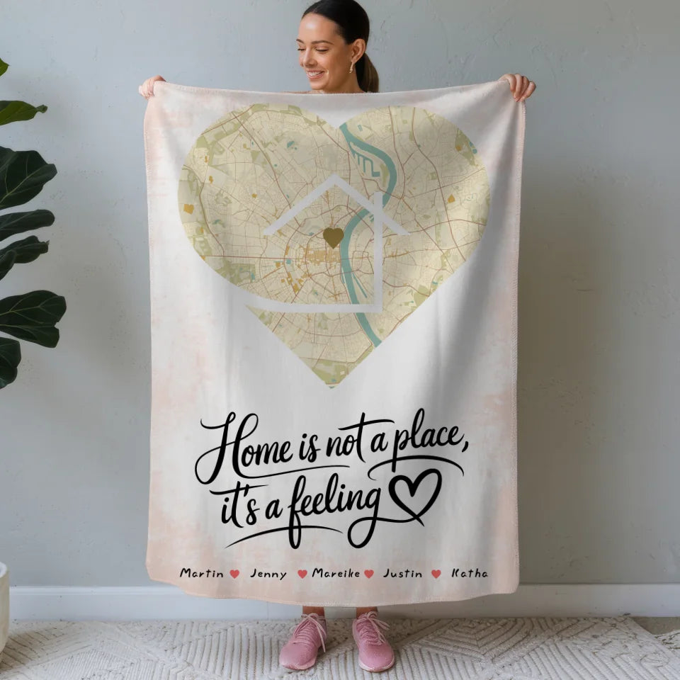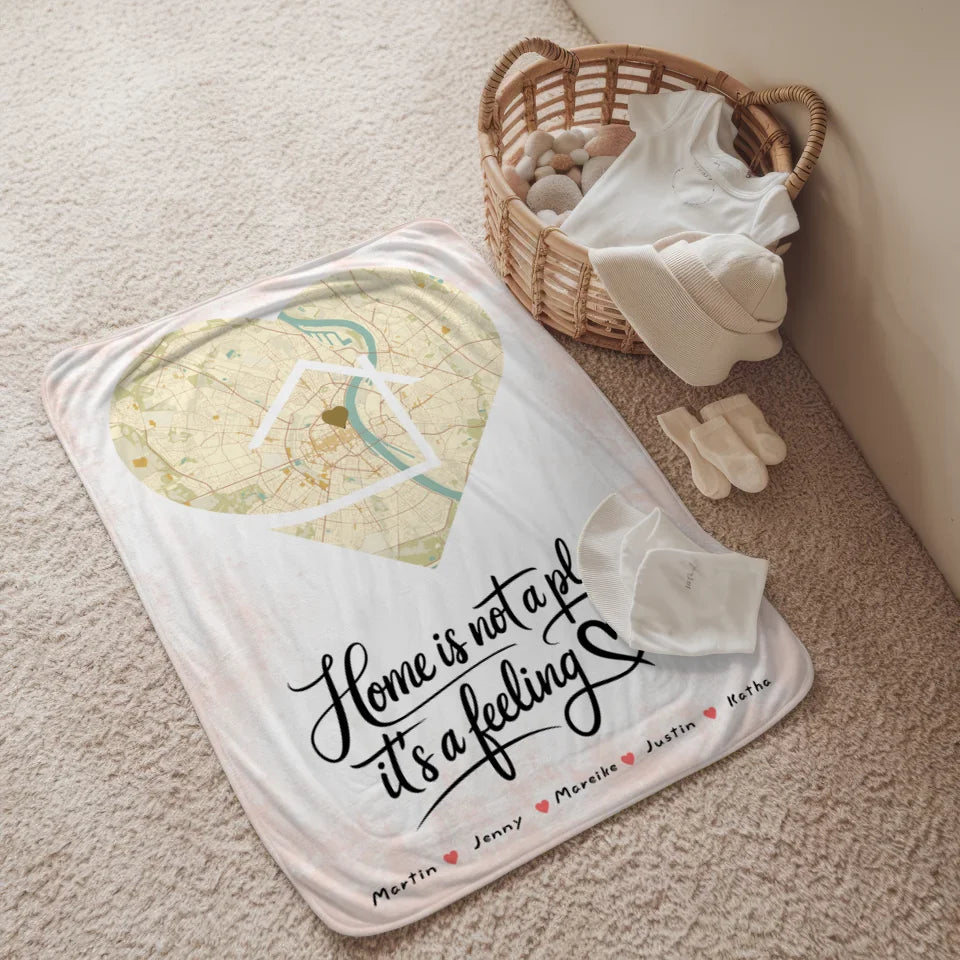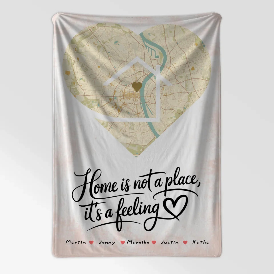 Personalisiertes Decke Familie Stadtkarte Is A Feeling Herz Form