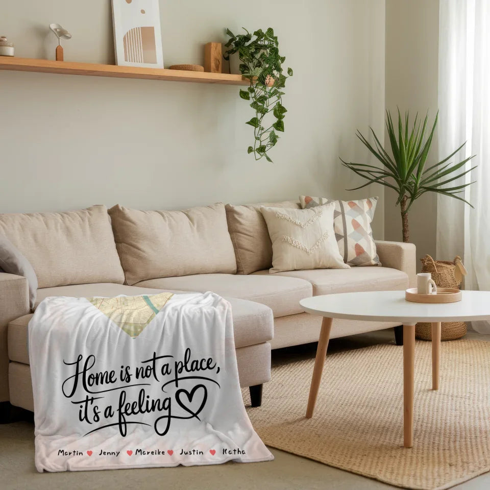 Mach dein Zuhause noch gemütlicher mit unserer einzigartigen Decke Familie, die nicht nur wärmt, sondern auch dein Herz berührt. Die 'Personalisierten Decke Familie Stadtkarte Is A Feeling Herz Form' bietet dir die Möglichkeit, das besondere Gefühl von Zuhause in deinem Raum zu verewigen. Mit dem schönen Spruch 'Zuhause Ist Da Wo Sich Das Herz Wohlfühlt' wird diese Decke zum perfekten Begleiter in deinem Alltag.