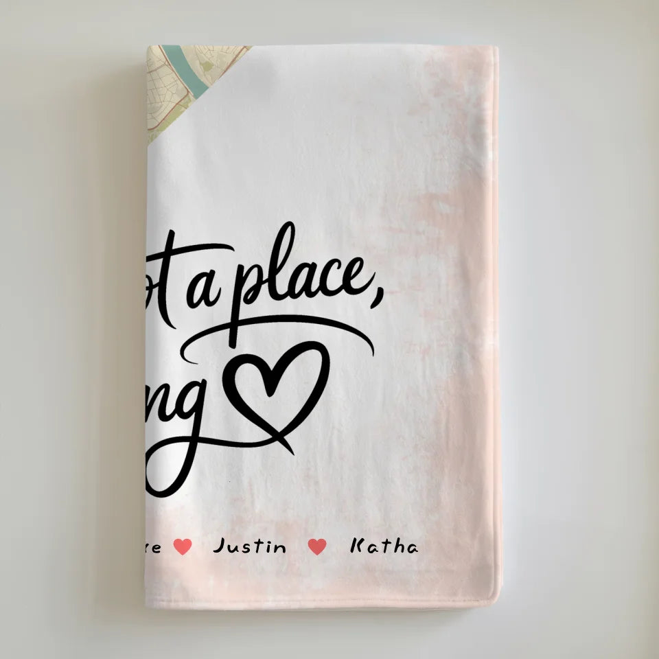 Entdecke die persönliche Verbindung mit der 'Personalisierten Decke Familie Stadtkarte Is A Feeling Herz Form'