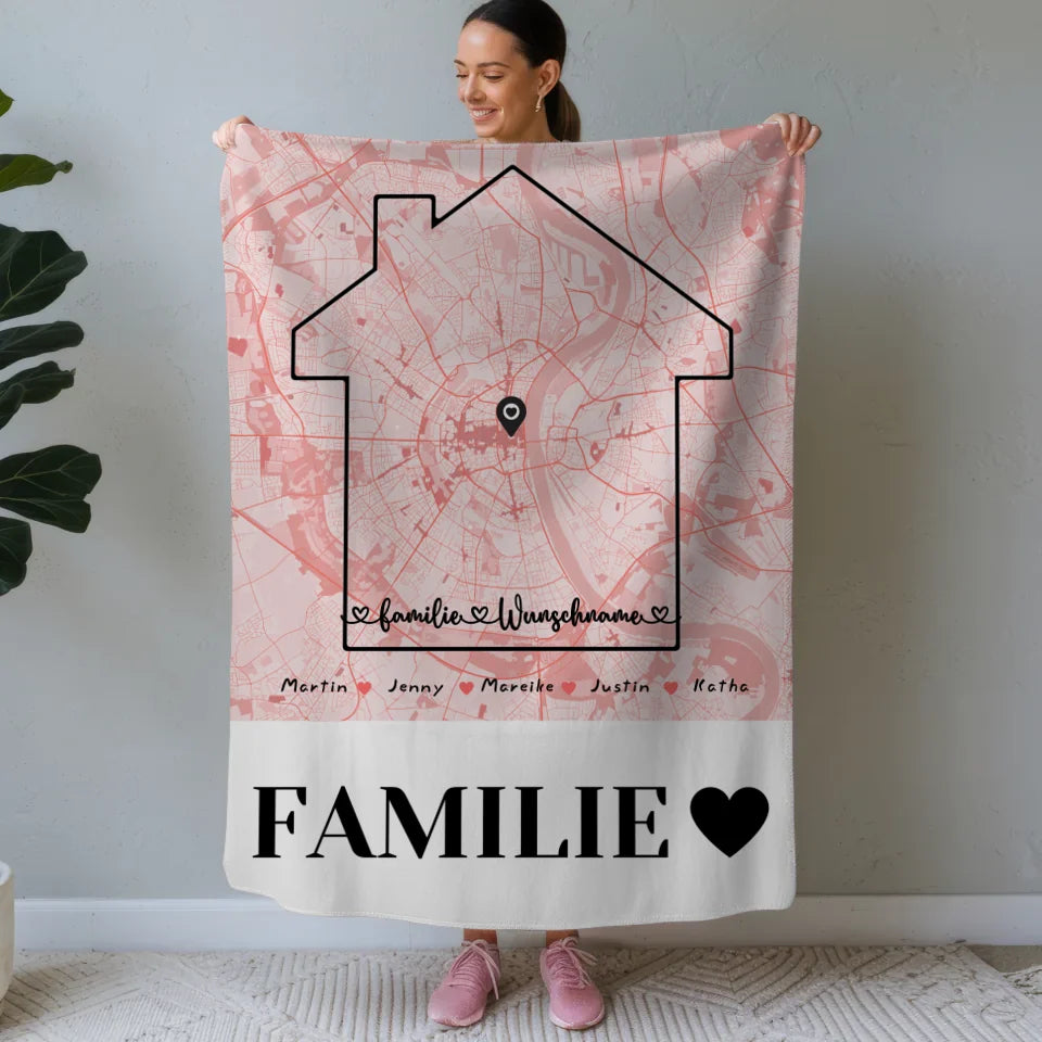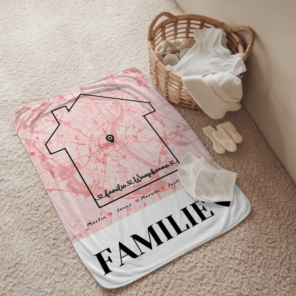 Personalisiertes Decke Familie Stadtkarte mit Nachname Geschenk