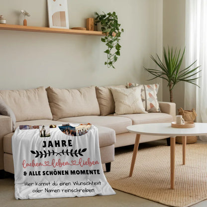 Überrasche deine beste Freundin mit einer einzigartigen und personalisierten Decke, die perfekt zu ihrem 40. Geburtstag passt. Unsere personalisierte Decke für Beste Freundin 40 Geburtstag Fotos Lachen Leben Wunschtext bietet die Möglichkeit, über 20+ Fotos und einen eigenen Spruch oder Wunschtext hinzuzufügen. Damit wird dieses Geschenk zu etwas ganz Besonderem, das ihre besten Erinnerungen und die schönsten gemeinsamen Momente festhält.