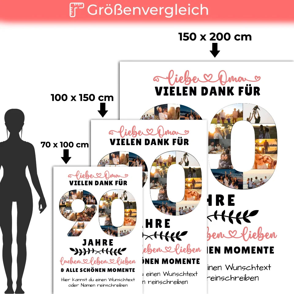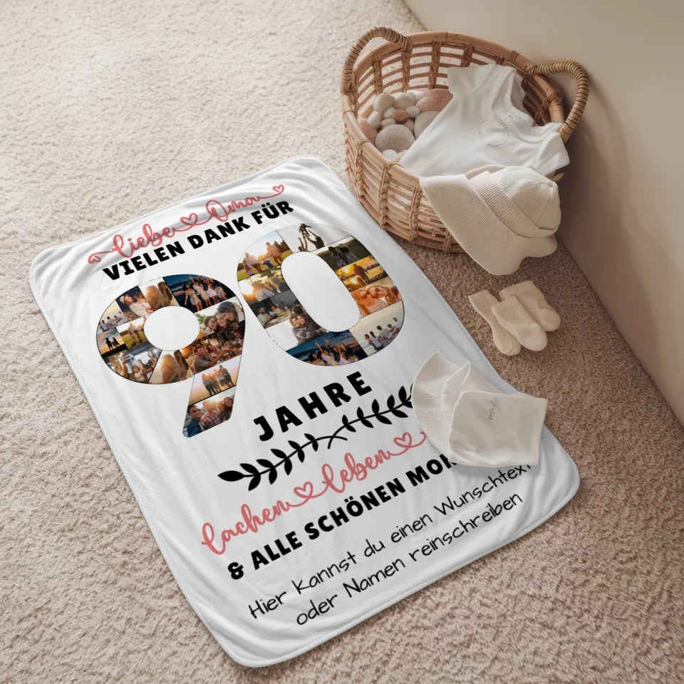 Personalisiertes Decke für Oma 90 Geburtstag Fotos Wunschtext