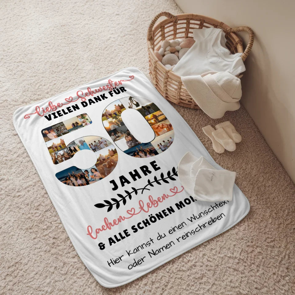 Personalisiertes Decke für Schwester 50 Geburtstag mit Fotos und Wunschtext
