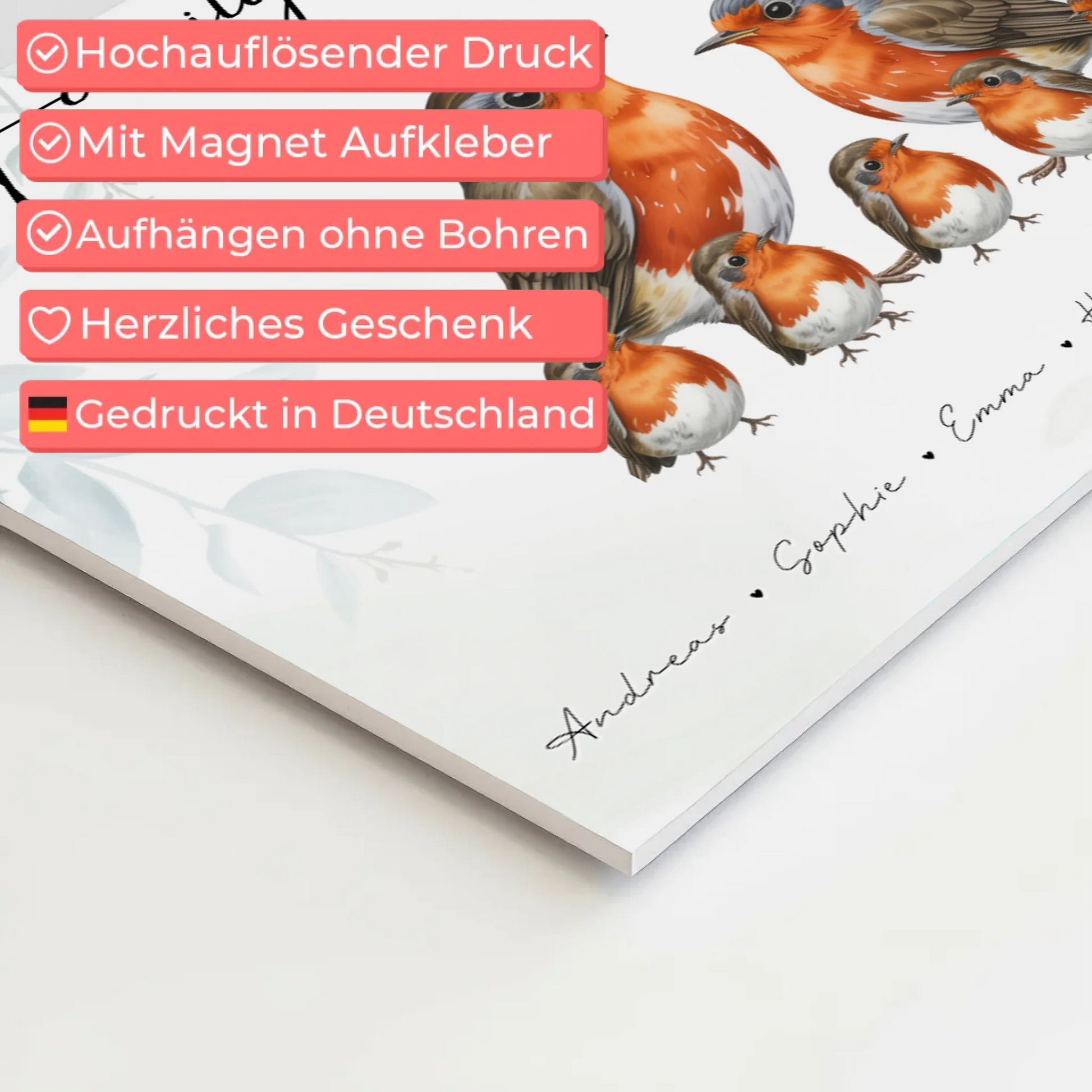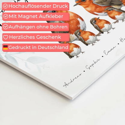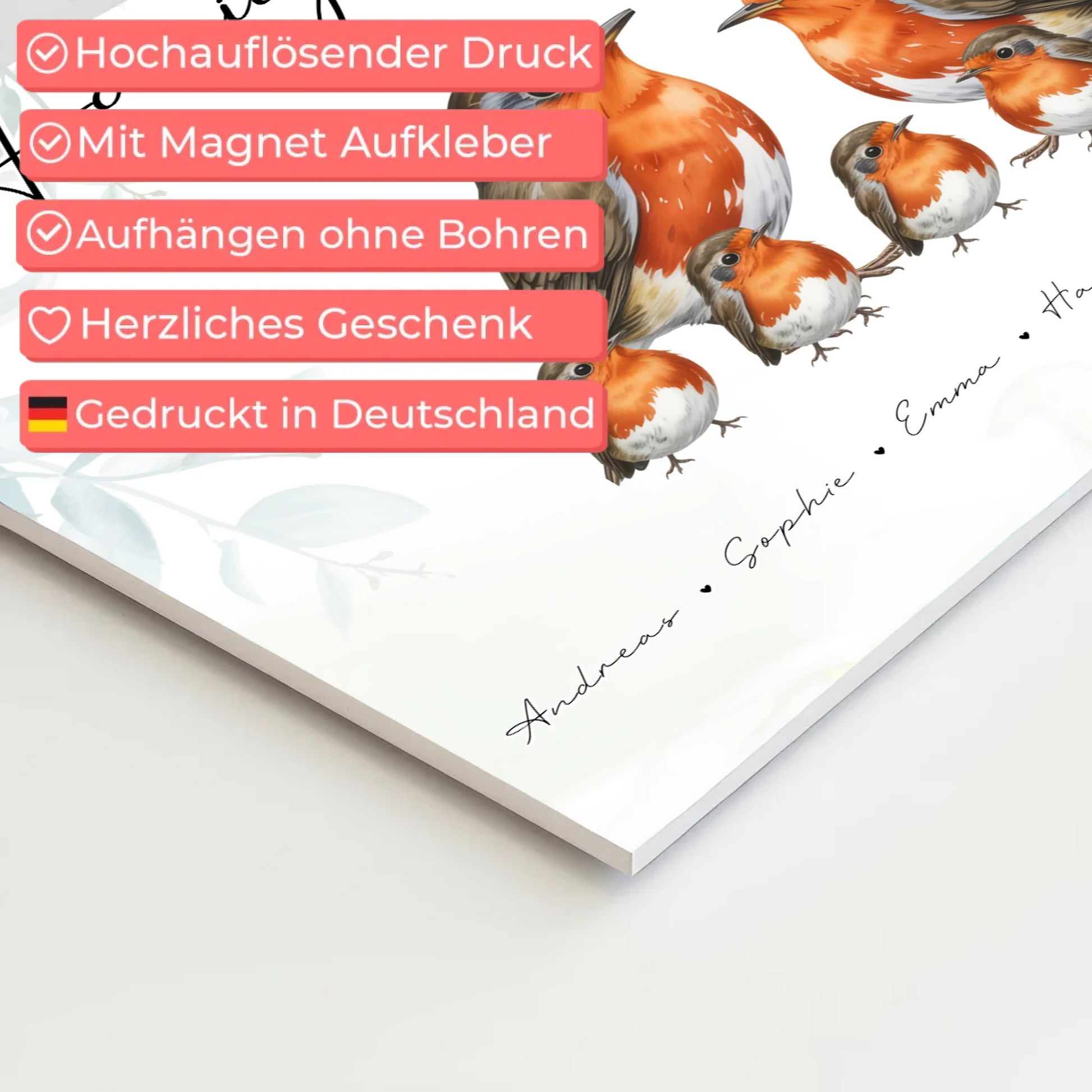 Personalisiertes Familien Fotoboard Rotkehlchen Familienporträt Geschenk für Mama Papa Oma Opa