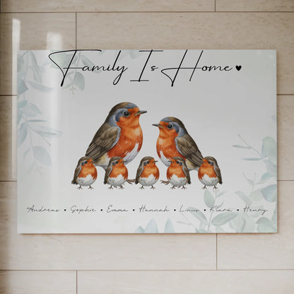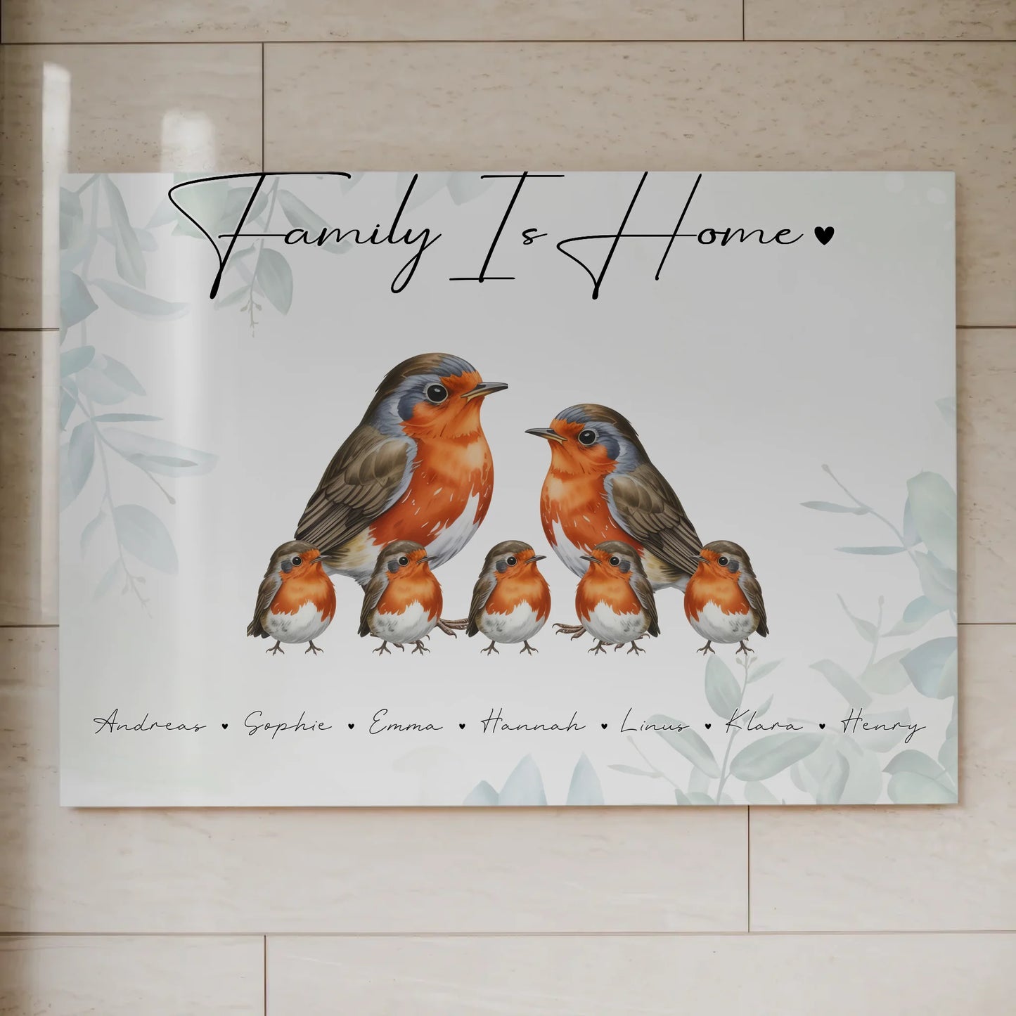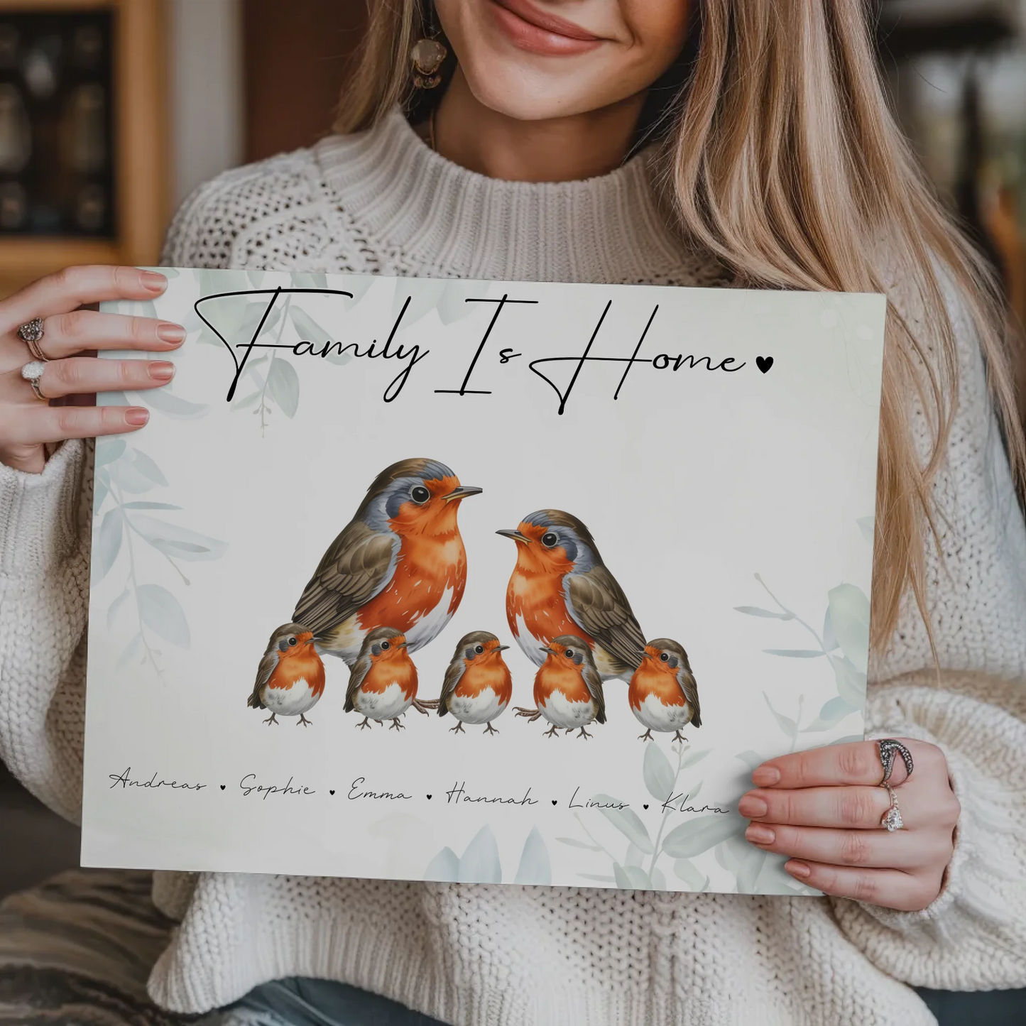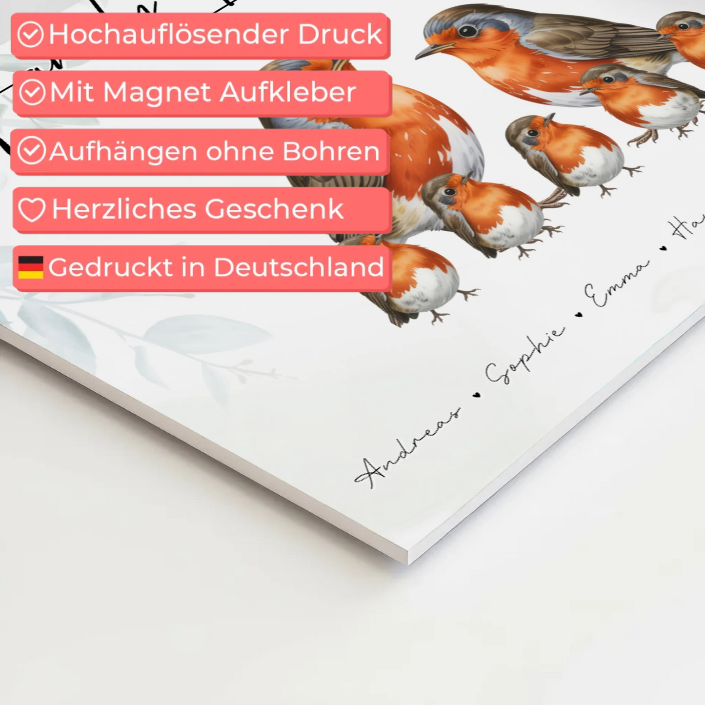 Personalisiertes Familien Fotoboard Rotkehlchen Familienporträt Geschenk für Mama Papa Oma Opa