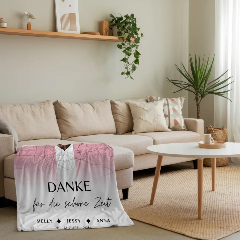 Die Decke ist nicht nur praktisch, sondern auch eine wunderbare Möglichkeit, deiner Schwester zu zeigen, wie wichtig sie dir ist. Egal ob zum Geburtstag, zu Weihnachten oder einfach als nette Aufmerksamkeit – die personalisierte Decke ist immer eine gelungene Überraschung. Auf dem Design prangt der schöne Spruch 'Danke Für Die Schöne Zeit', der das Geschenk noch emotionaler gestaltet.