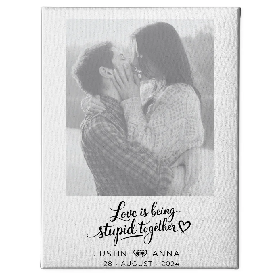 Personalisiertes Foto Leinwand Paare mit Namen Love Is Being Stupid Together